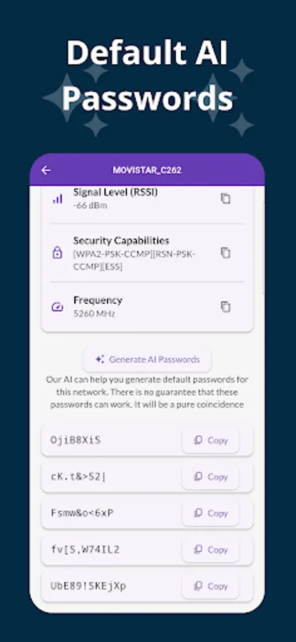 AI-Powered Password Generator: Use our AI password generator to create a list of potential default passwords for your router. This feature is a helpful tool for recovering a lost default password for your own device.