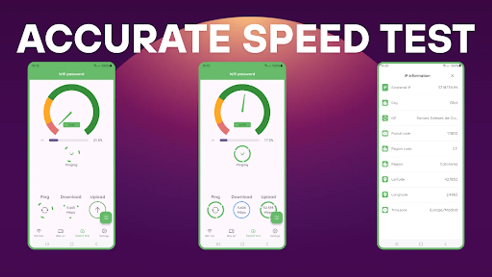Accurate Speed Test: Analyze your internet connection speed with a precise and reliable speed test. Understand your download and upload speeds and ping latency. Â