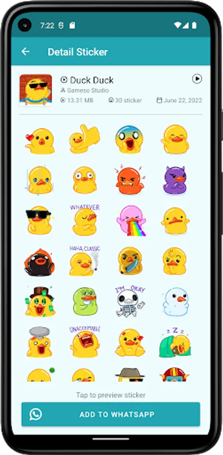 A very large collection of Cute Duck Animated Stickers. In this application you will find lots of cute and adorable animated duck stickers. The collection of stickers in this application is compatible with the latest version of WhatsApp so you can install it easily.