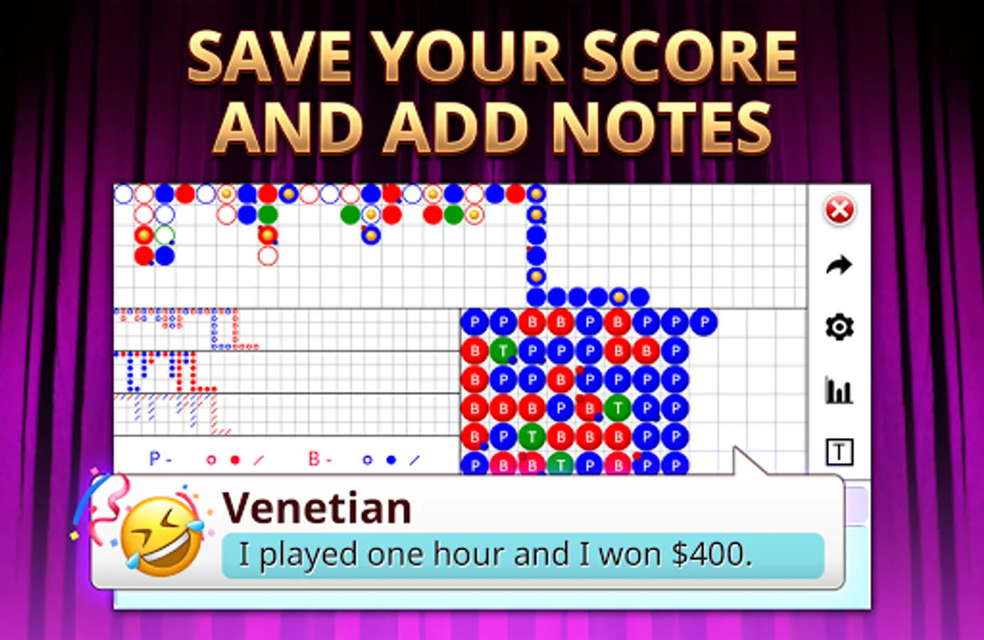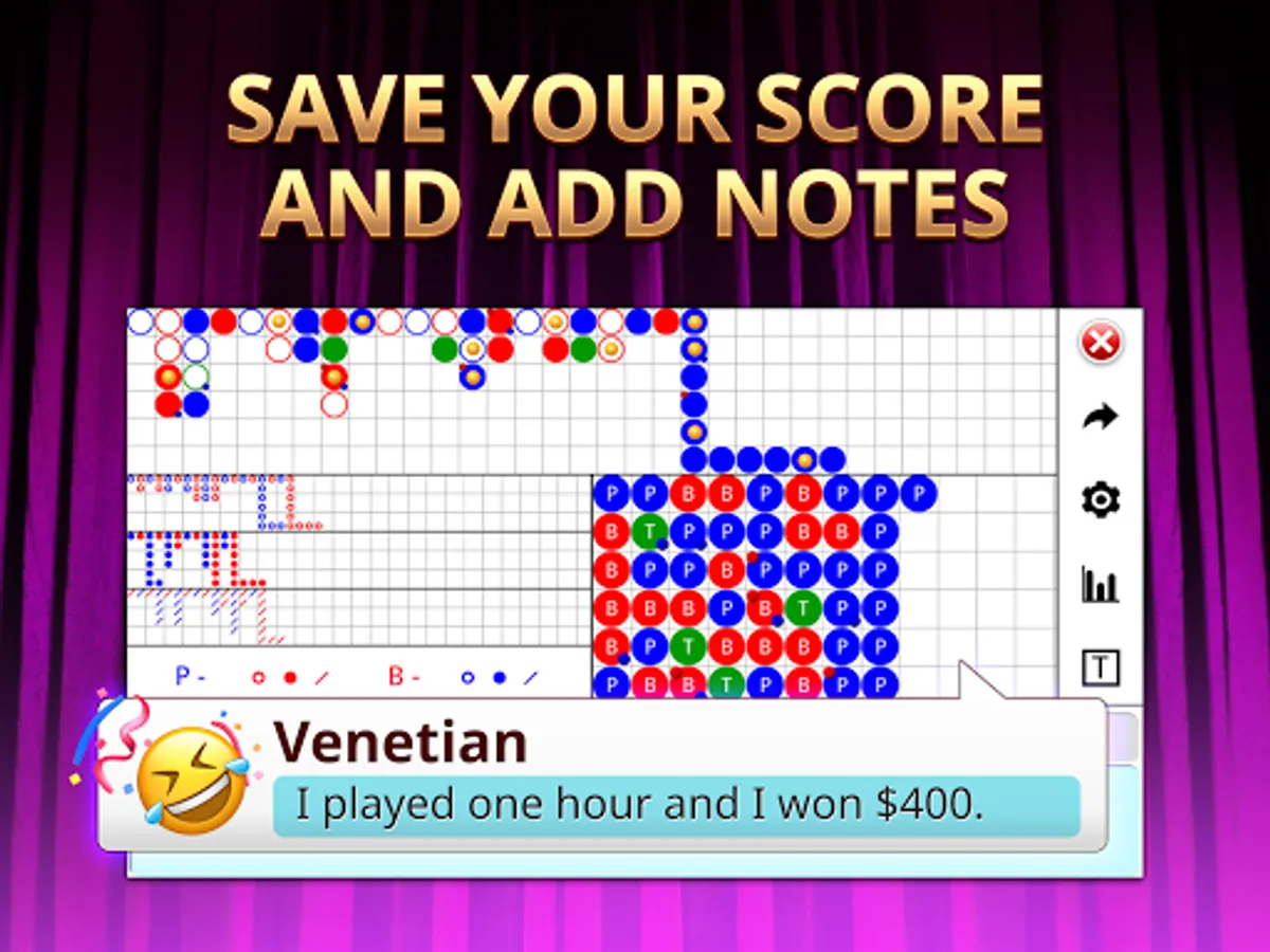 Baccarat Scoreboard is completely FREE. It will be your best tool to TRACK the score and improve your SKILLS.
