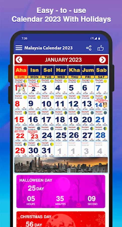 Enjoy your count down Malaysia Calendar 2023 app and widget!