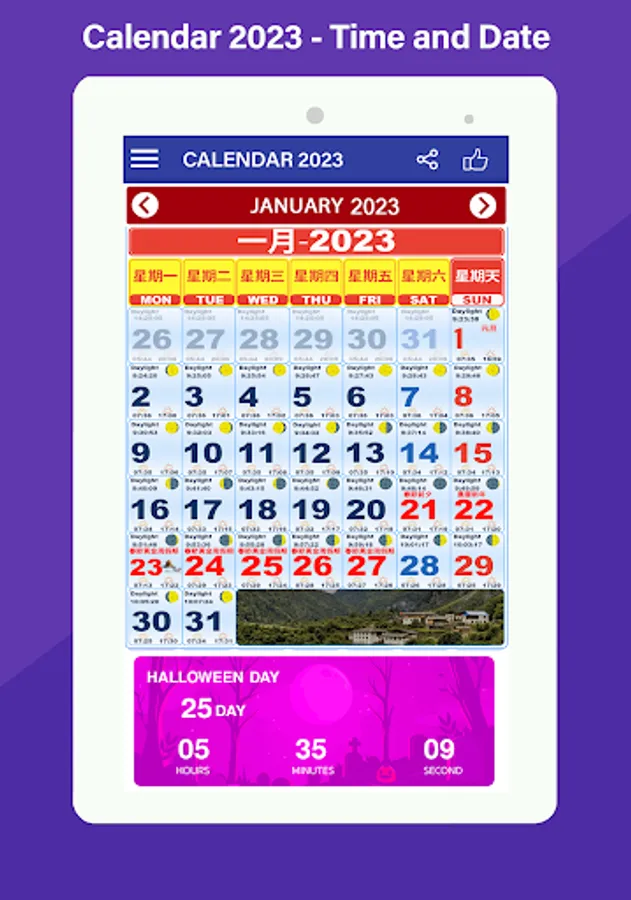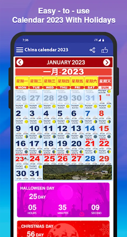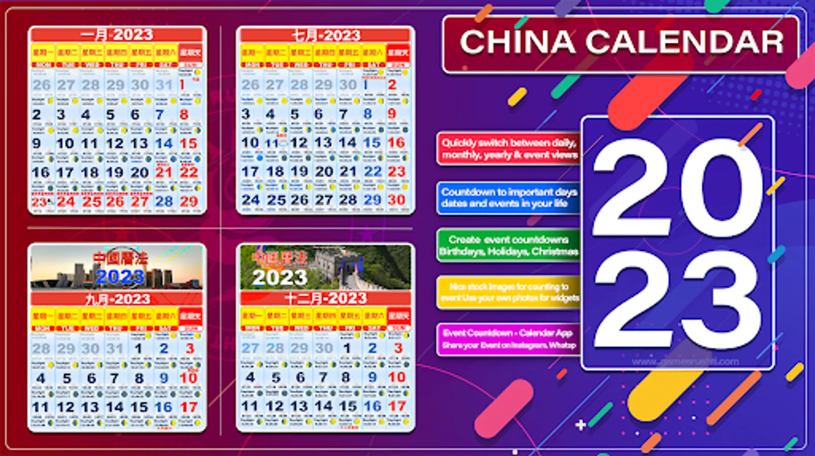 Chinese Lunar Calendar 2023 App Contains High Quality Images of 2023 Chinese Calendar, Holidays and Festivals list for Calendar 2023