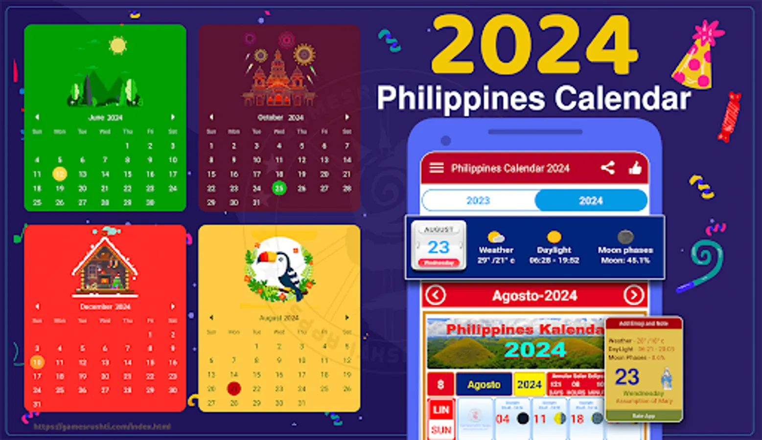 In this Philippines Calendar 2024 have all the festivals around for year Calendar 2024 These festivals can show in Countdown mode as well.