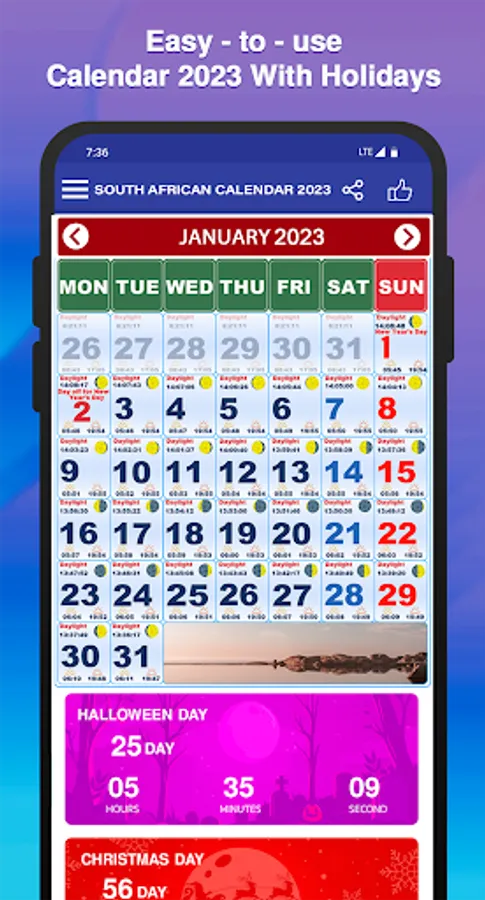 South African Calendar 2023 best calendar app available for the year 2023 with Holidays