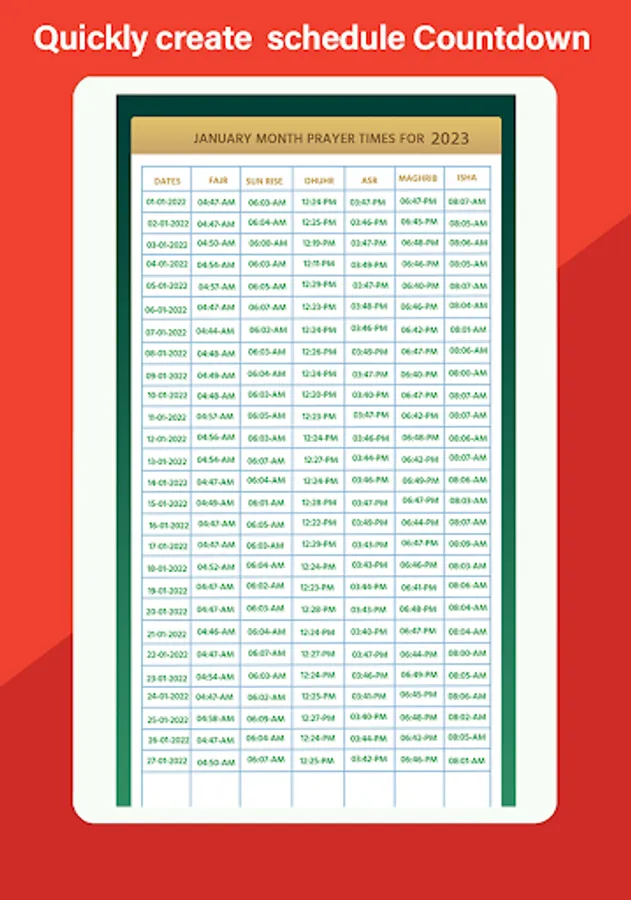 ☪ Namaz time table chart 2024