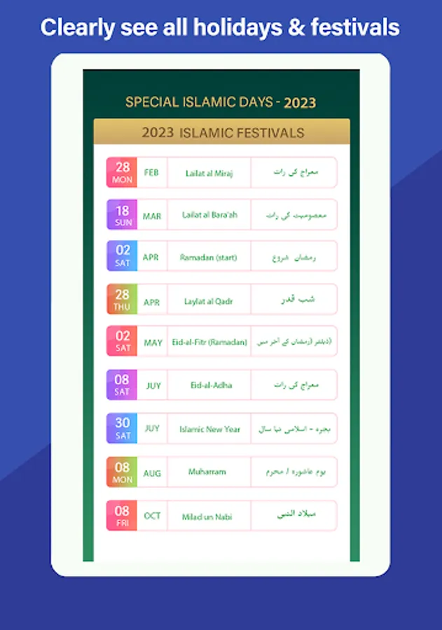 holidays, festival lists, ramadan kareem namaz schedule, and many other