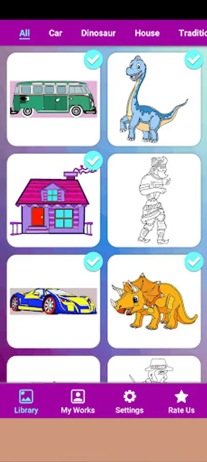 Improve your coloring skills with Gamesstar Coloring, a good app designed with kids in mind. Our application currently has car coloring, house painting, dinosaur coloring and traditional characters coloring. Since our application has just been released, it can be added to the painting of cars, houses, dinosaurs and traditional characters in different titles upon your request.
