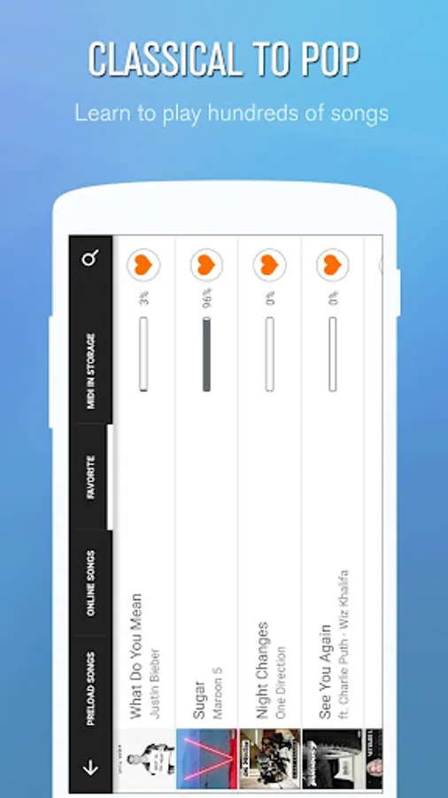 Perfect Piano is an intelligent piano simulator designed for Android phones and tablets. With in-built genuine piano timbre, this app can teach you how to play the piano and amuse you at the same time!