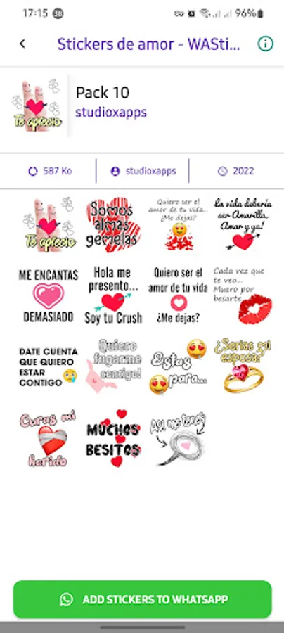 Romantic stickers and phrases of love for WhatsApp