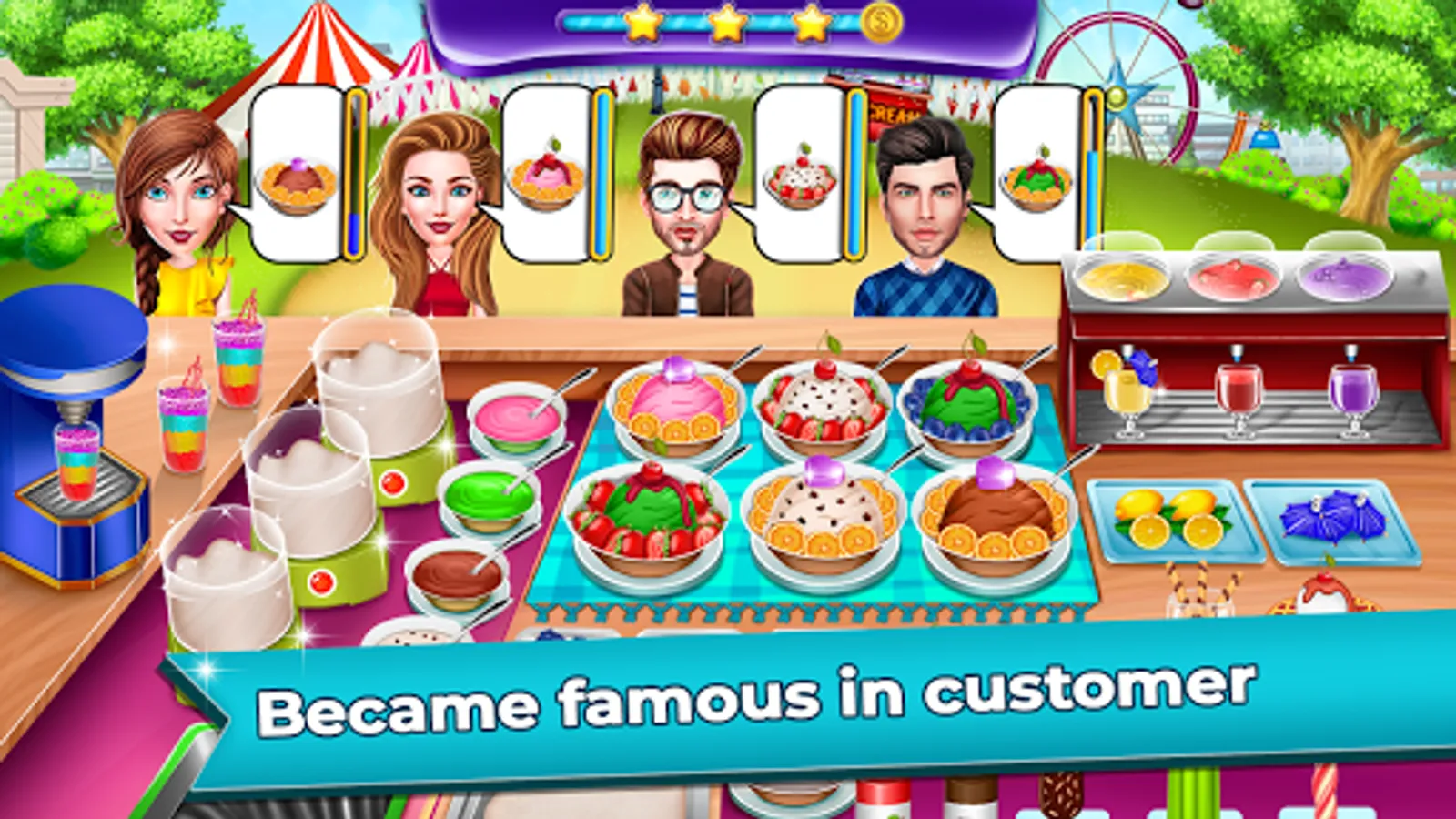 This is a good chance to turn your love for fine ice cream and frozen treats into ice cream chef game! Get the attention of customers passing by the truck with an amazing presentation of the ice creams. Become an artist with tasty toppings and ice cream decorations and get customers lined up to have those tasty ice creams in your shop management game.