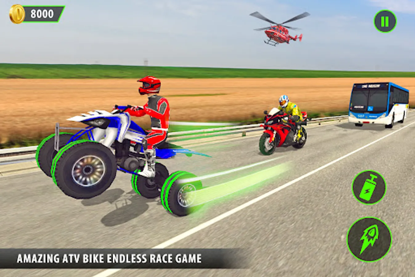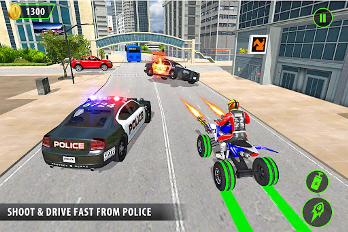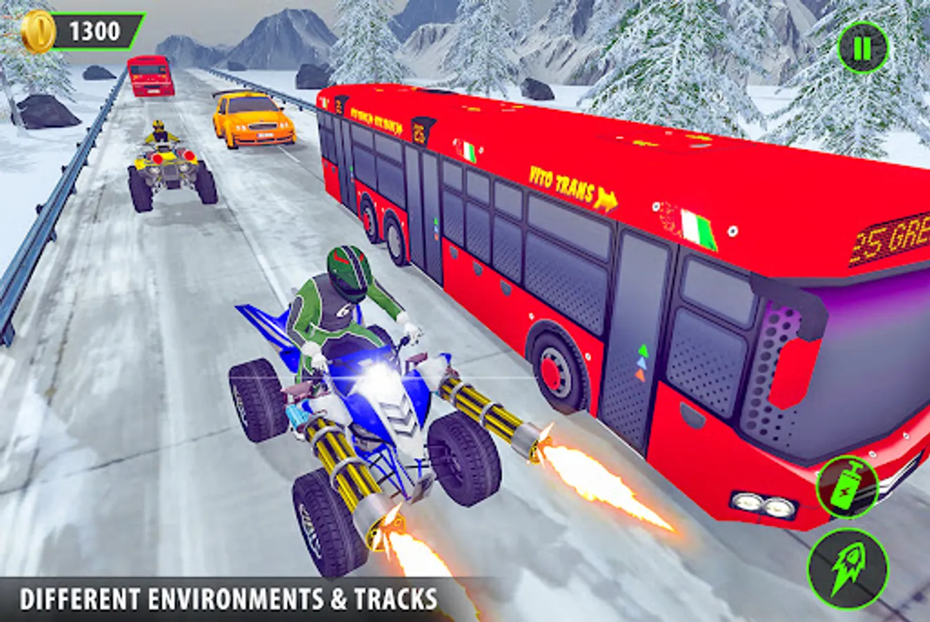 - ATV quad bike traffic shooting missions like bmx bicycle racing.