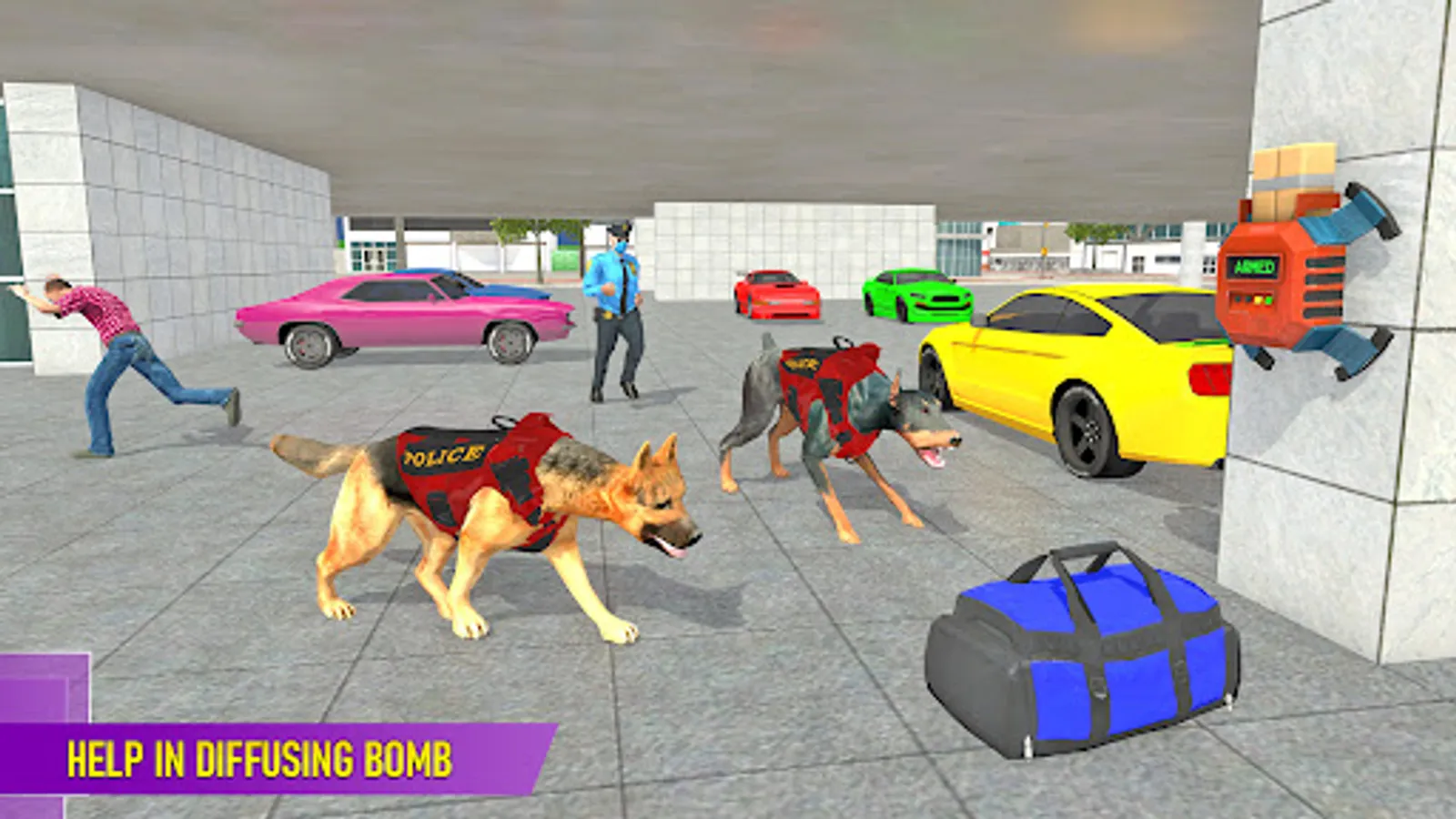 US police dog simulator, trained as a professional police dog to sniff around, catch bank robbery criminals and rescue civilians. People might try to sneak in with their bombs, weapons including banned Russian guns & rifles for crime shooting. US Police dog will be used to hunt down criminals and chase robbers to rescue the city from crime activities in this US police dog survival game offline.