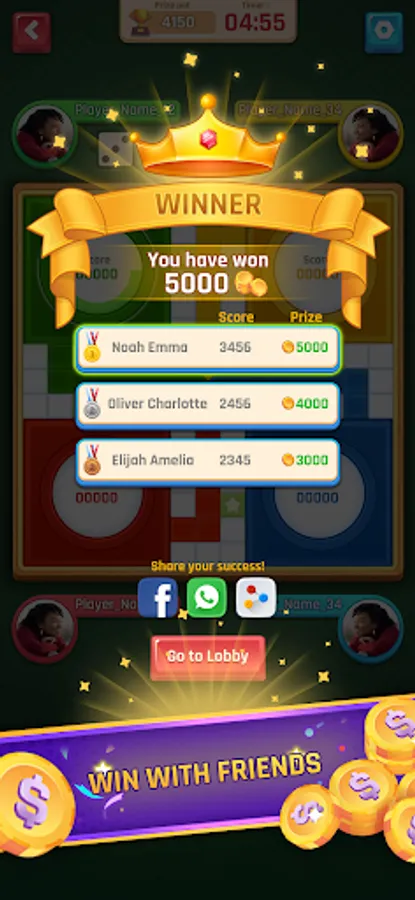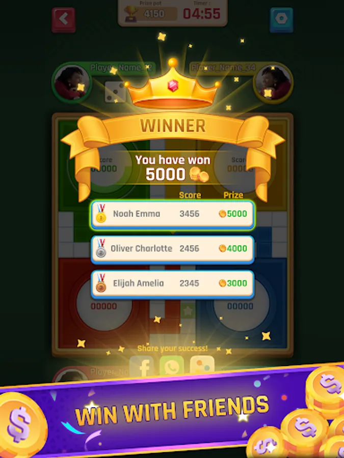 Ludo Brawl is an online version of the classic ludo board game. To play you need to choose the format of the game (1v/s1, 1 winner, 2 winners, 3 winners) and the type of tournament (Entry fee or free game). The objective of the game is pretty straightforward. Each player gets 4 tokens to move around the board in a clockwise direction, up the home column, and into the home area. However, to win, you do not need to take all your tokens inside the home area. You win by earning maximum points! So, strategize your moves carefully, and don't forget you are on a timer!