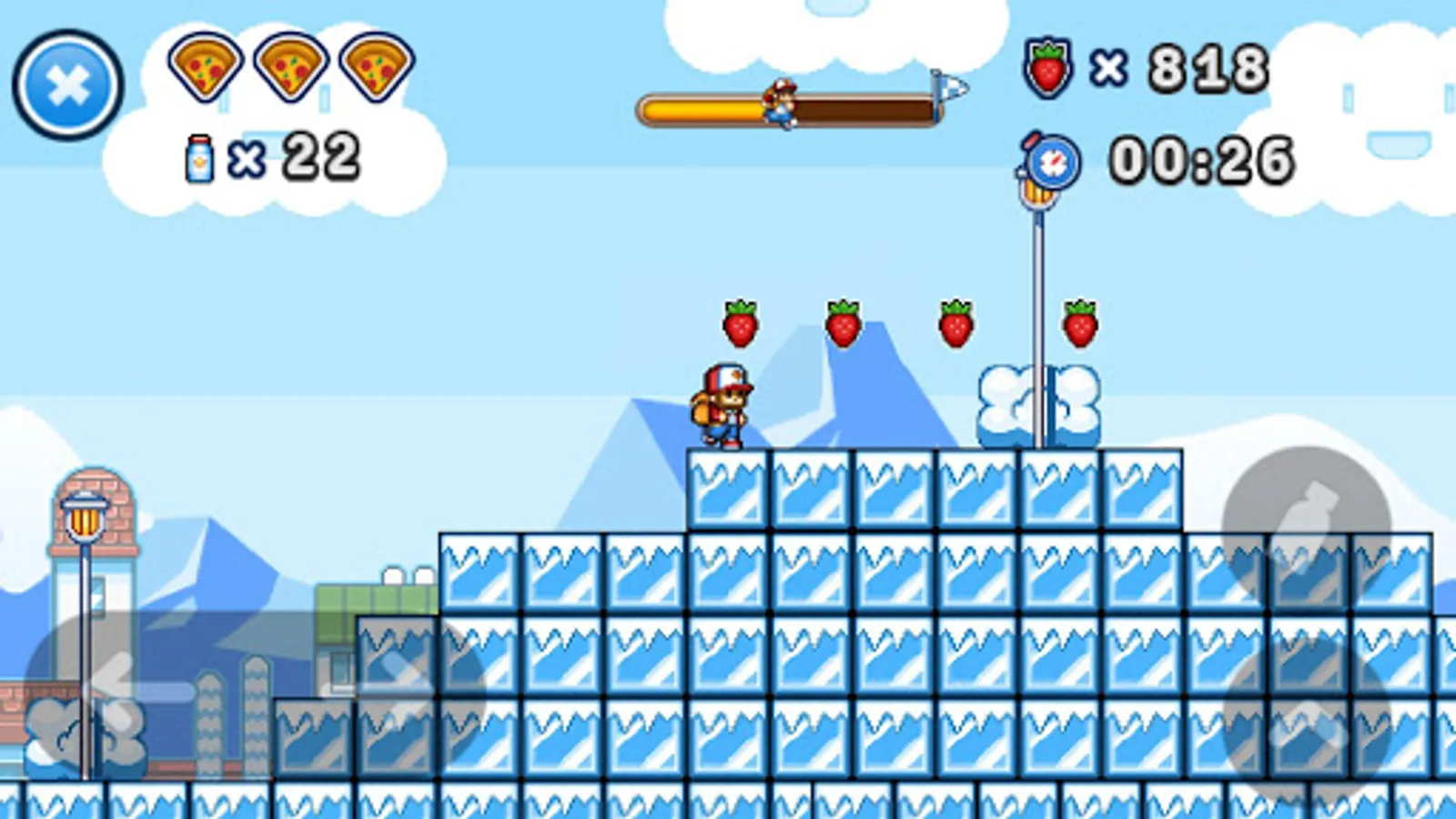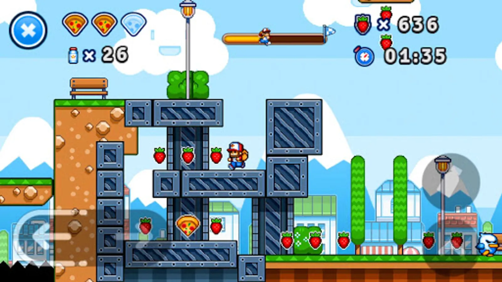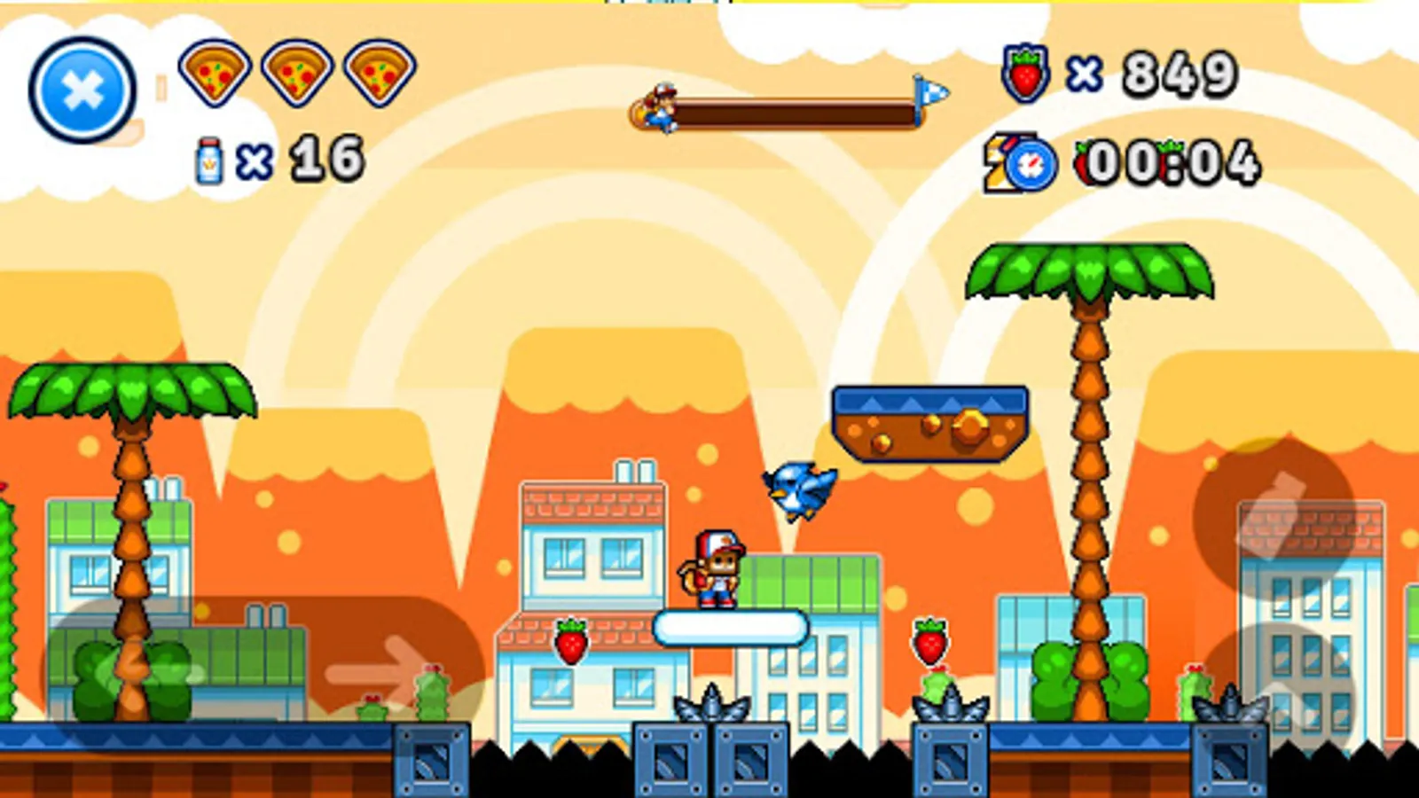 During this adventure trip, there are a great number of dangerous creatures and you must defeat them bravely, run and jump with excitement in this threatening world, finally you will get to the destination so as to help Pizza Prince embrace his beautiful princess again!