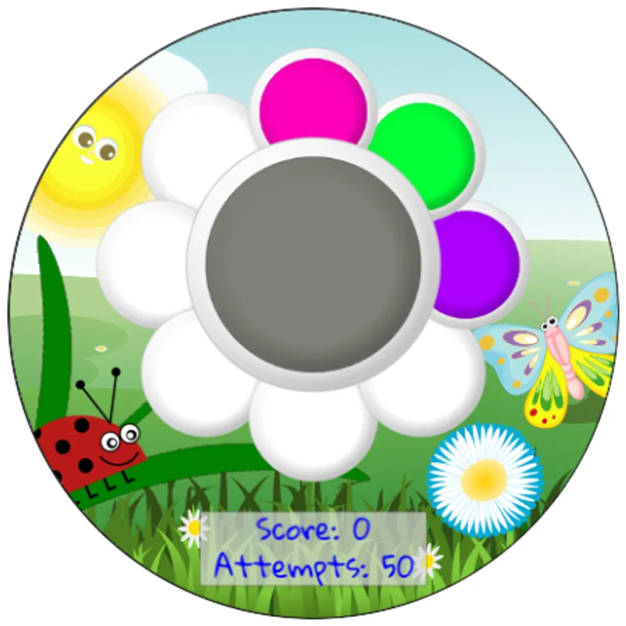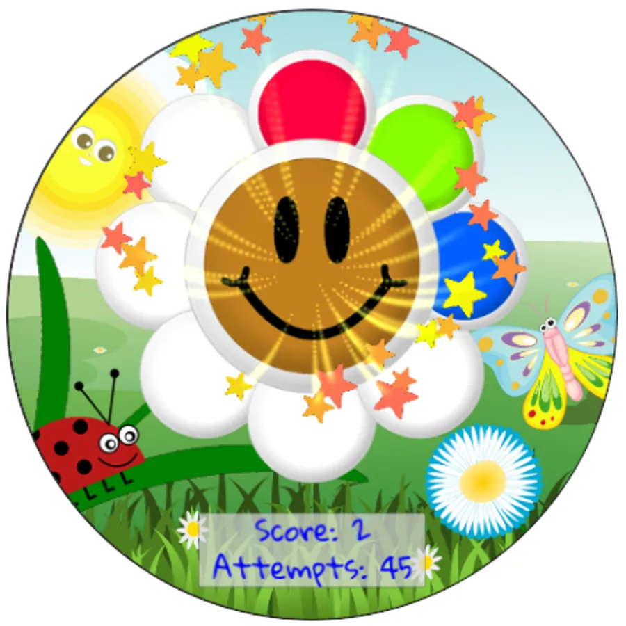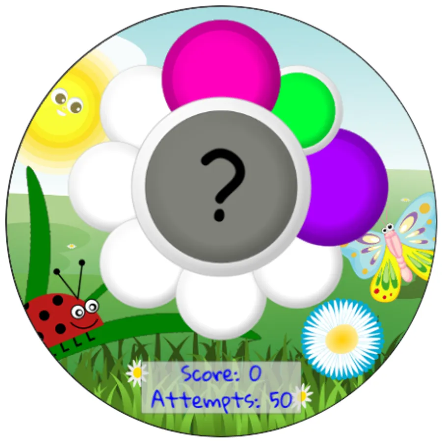 Select two flower leaves, that you think Simon used for color mix in the center, and tap on the flower center to check if your guess is right.
