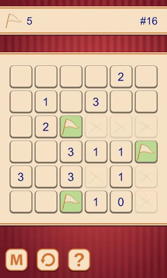 Mines is free and contains 64 puzzles in 4 different sizes, from 5x5 to 8x8.