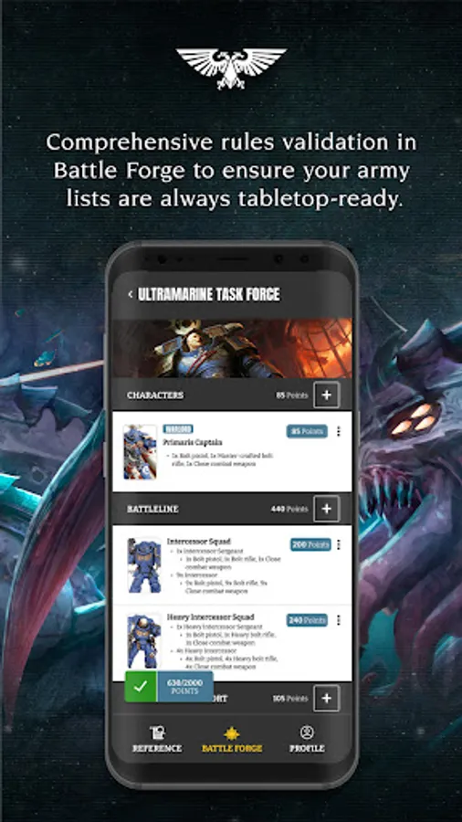 Welcome to the official Warhammer 40,000 app! Here you’ll find everything you need to build armies, engage in brutal battles, and reference stats for your units. It’s your complete digital companion to waging tabletop warfare in the 41st Millennium.