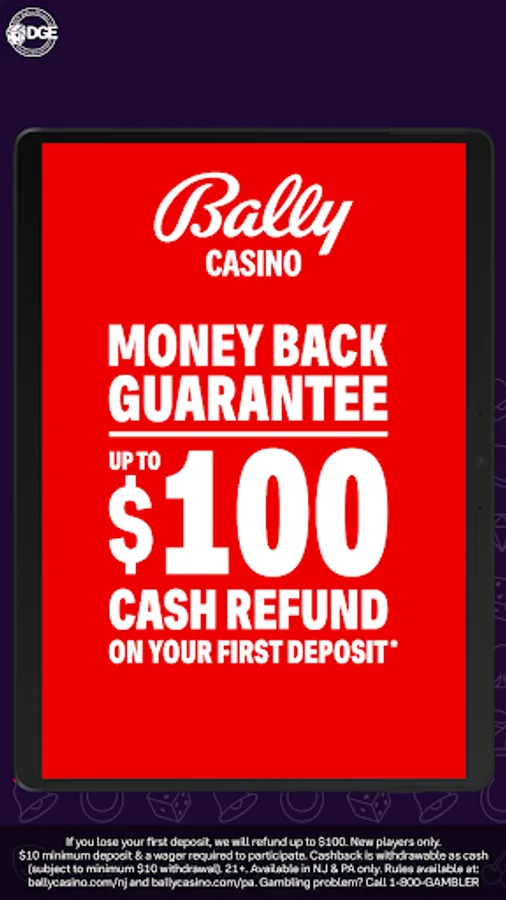 * If you lose your first deposit, we will refund up to $100. New players only. $10 minimum deposit & a wager required to participate. Cashback is withdrawable as cash (subject to minimum $10 withdrawal). Rules apply and are available at ballycasino.com/nj (NJ) and ballycasino.com/pa (PA).