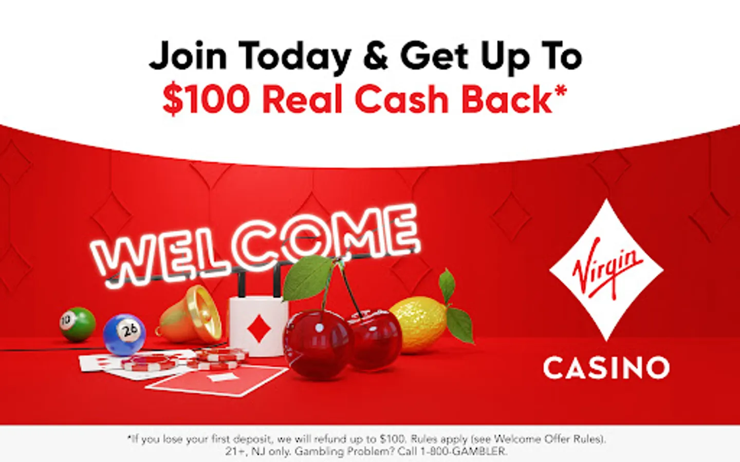 * $10 is paid in bonus money: Bonus Money must be played online, is not redeemable for cash and expires after thirty (30) days. Patrons need to wager once through Bonus Money on any games on the website. All Bonus Rules apply: www.virgincasino.com/#/bonusterms. All prizes are subject to minimum deposit/wager requirements. Available to new customers only, offer expires on December 31, 2023 at 11:59pm EST.