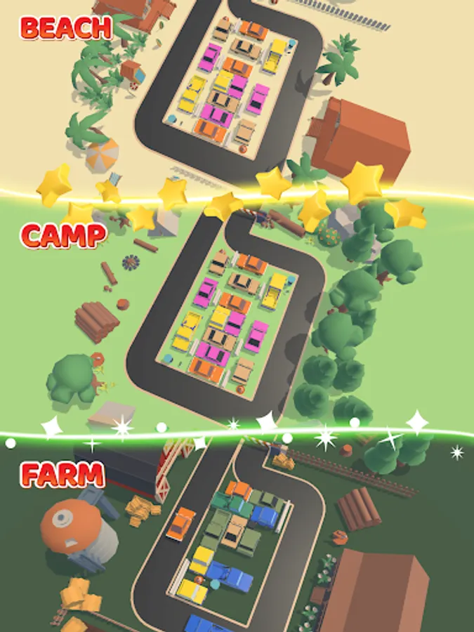 Earn coins and skin rewards for your favorite cars by beating levels and participating in seasonal events. Open new maps in saga while enjoying the most addictive parking escape puzzle!