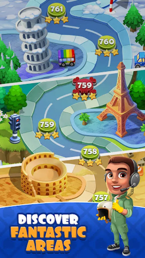 Explore the new areas and seasonal events with Treasure Keys, Easter Eggs, Christmas Car Puzzle games, and many more. Exciting adventures are waiting for you to discover in traffic jams! Rainbow buses appear on the road! Police cars are the best during rush hour. Collect cars and boosters to blow all the car jam stages and have a blast!