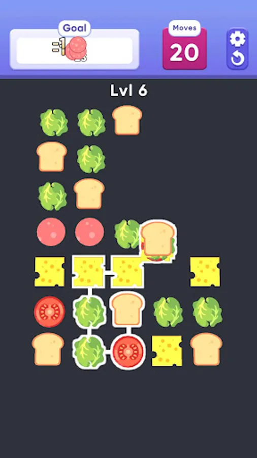 Get ready for a mouthwatering journey in Sandwich Line, a delectable puzzle game that will challenge your matching and culinary skills! On a grid-based table, connect two bread pieces to create sandwiches by collecting the target ingredients. Inspired by popular titles, this game offers a delightful twist on the matching puzzle genre. Can you build the perfect sandwich line and satisfy your hunger for challenging puzzles?