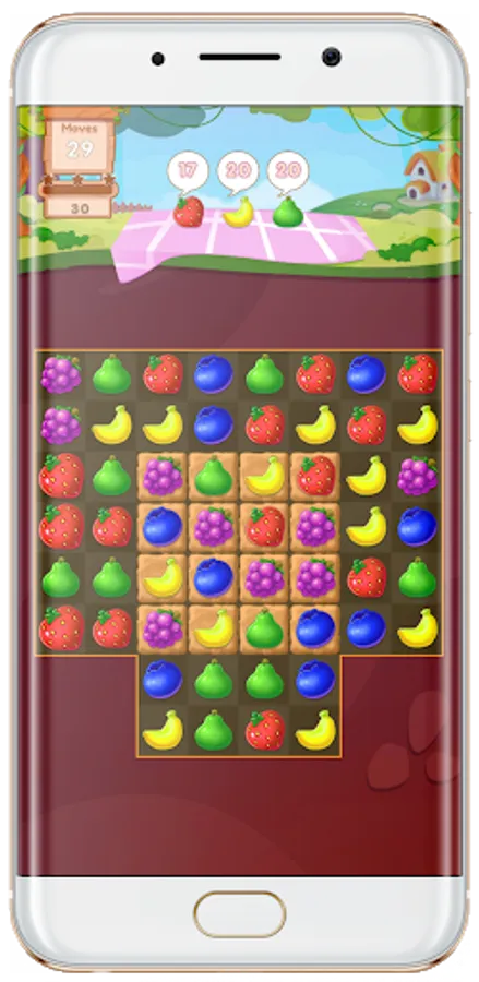 Swipe and match juicy fruits to progress through levels