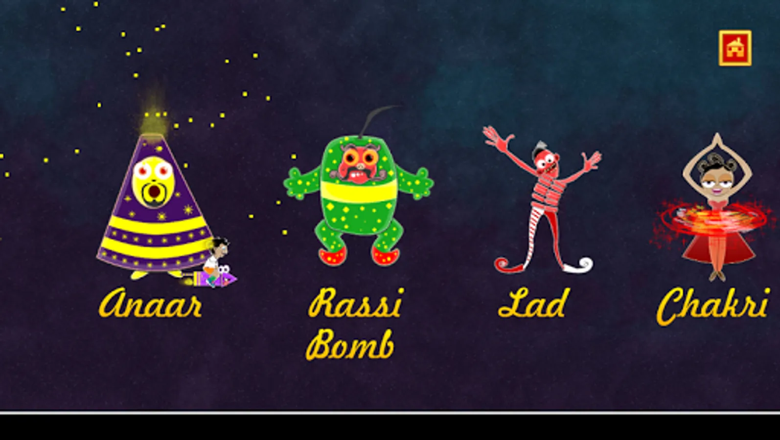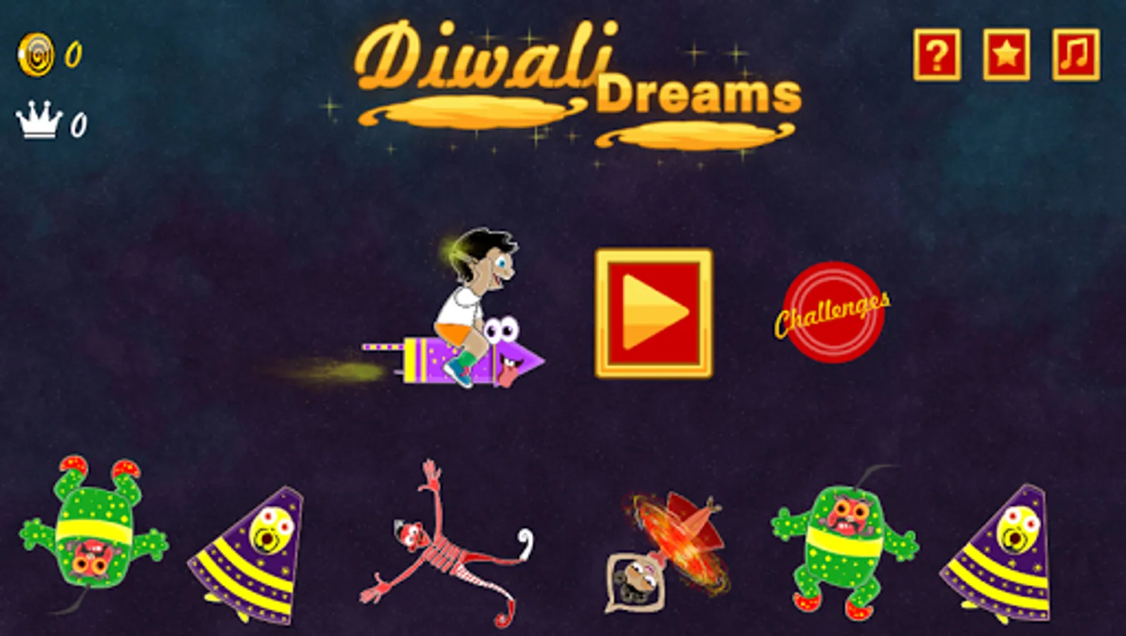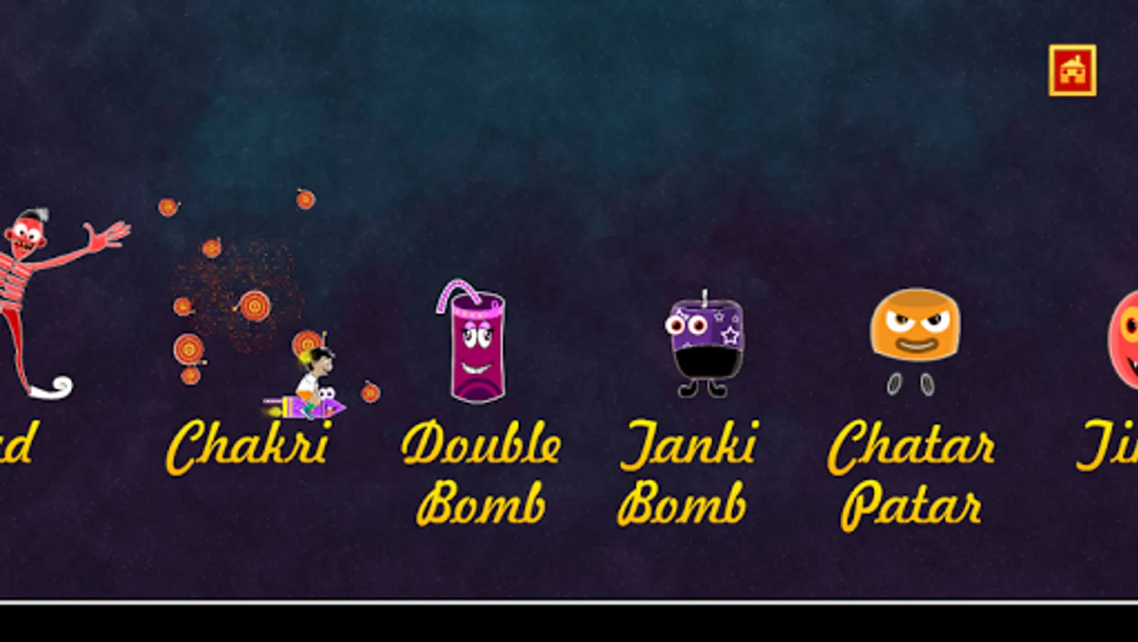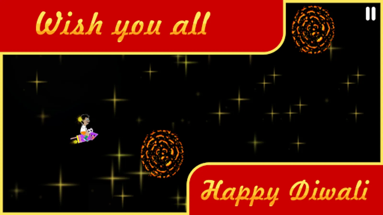 You play as a kid riding his cute rocket and has a magical phuljhaadi to fire every cracker (patakha) coming along the way while escaping through various obstacles. In this action packed Diwali game, you will find various crackers (patakhas - lad, rassi bomb, chatar patar, tanki bomb, anaar, chakri, tikdi, double bomb), challenges, awesome diwali crackers sound effects, 6 different mesmerizing music for different worlds and much much more.