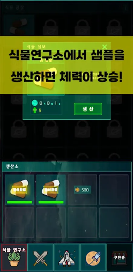 > When you produce plants, the planet's air is purified and your stamina increases!