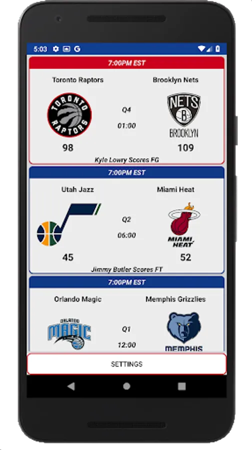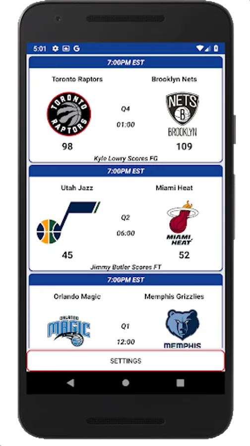 GameTime is a NBA live scores app that notifies you when games are in crunch time as well as displays all the current games being played today in a concise interface. Each game holds the scores, time left remaining in the game, current quarter being played, game start time, and latest play of the game. Users also have the ability to set when you want to be notified of a game by setting the score differential, time remaining and quarter. Additionally, users can also set a favourite team, which sends them a notification everytime that team is playing for the specific day. Developers for this application: Mohid Qureshi (Mohidq99@gmail.com), Archan Datta (Archan.datta@carleton.ca), Salman Haider (salmansyed146@gmail.com), Ashad Khan (khan.ashad.a@gmail.com).