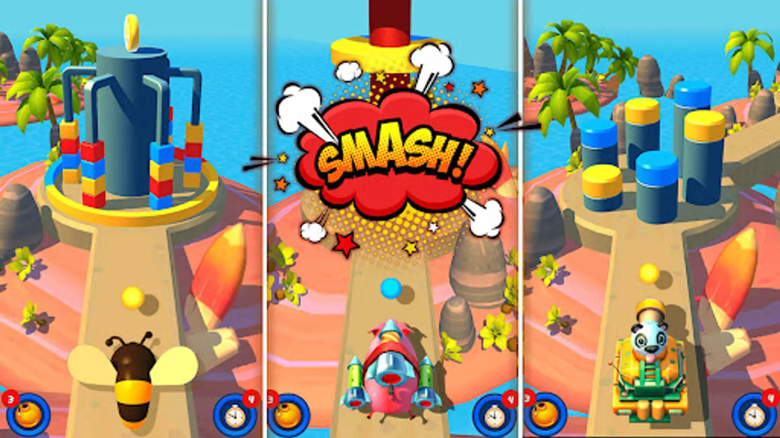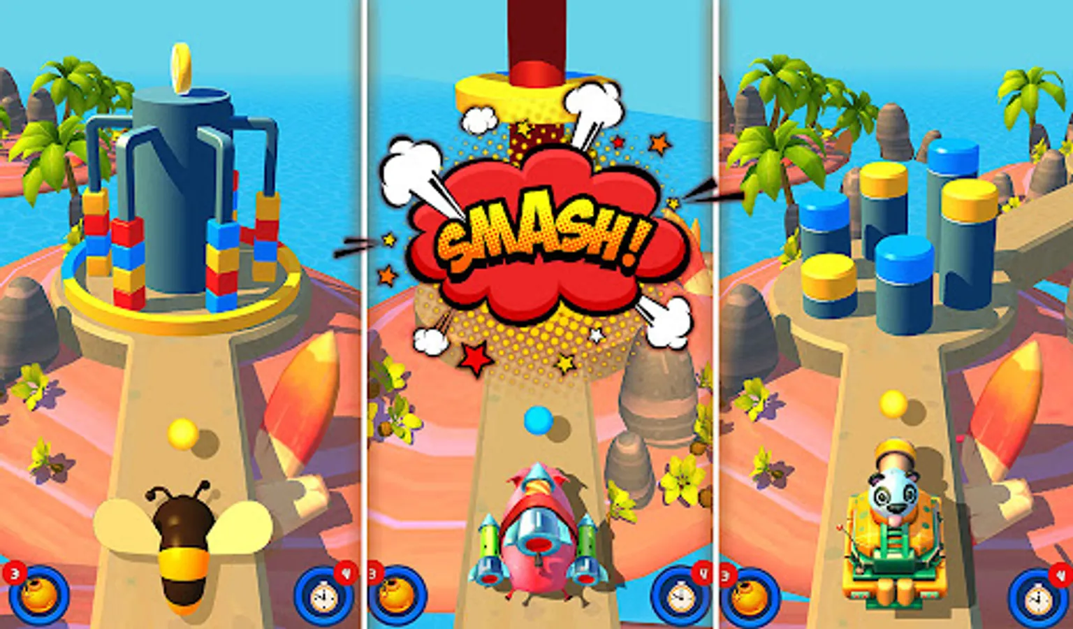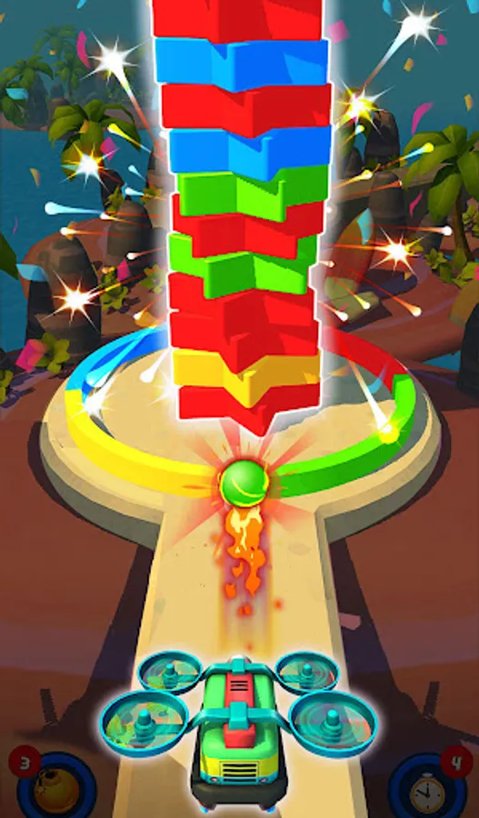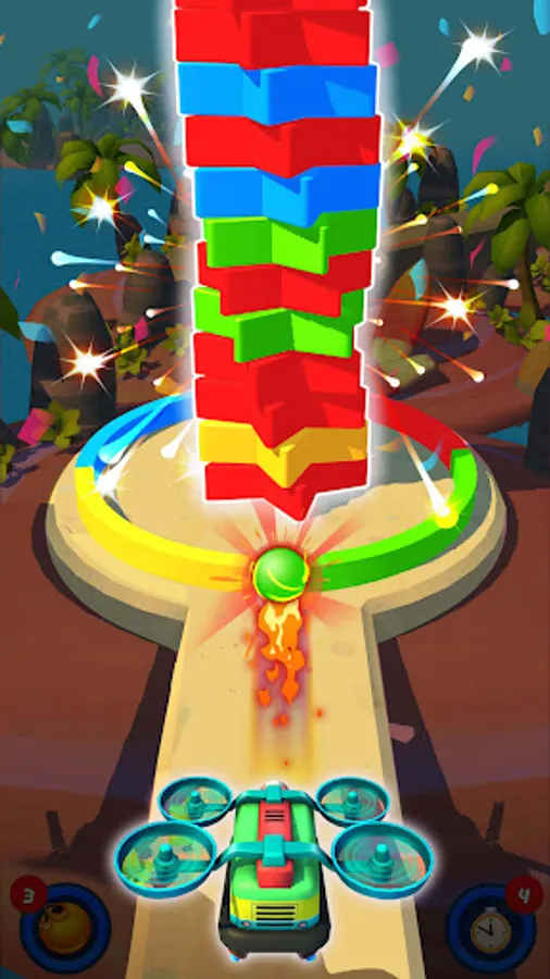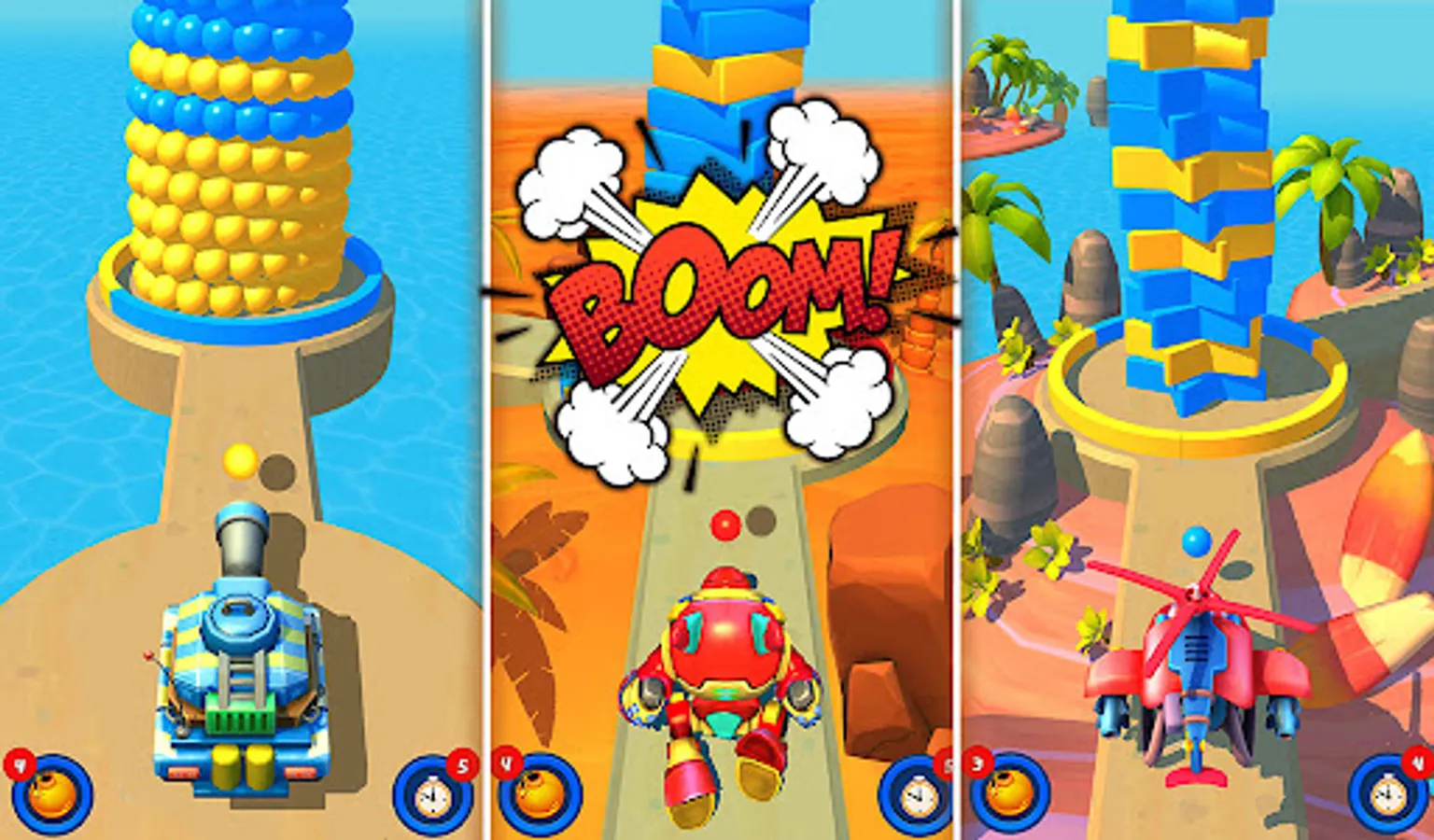 Tap on the screen to shoot and fire the ball to smash the tower.