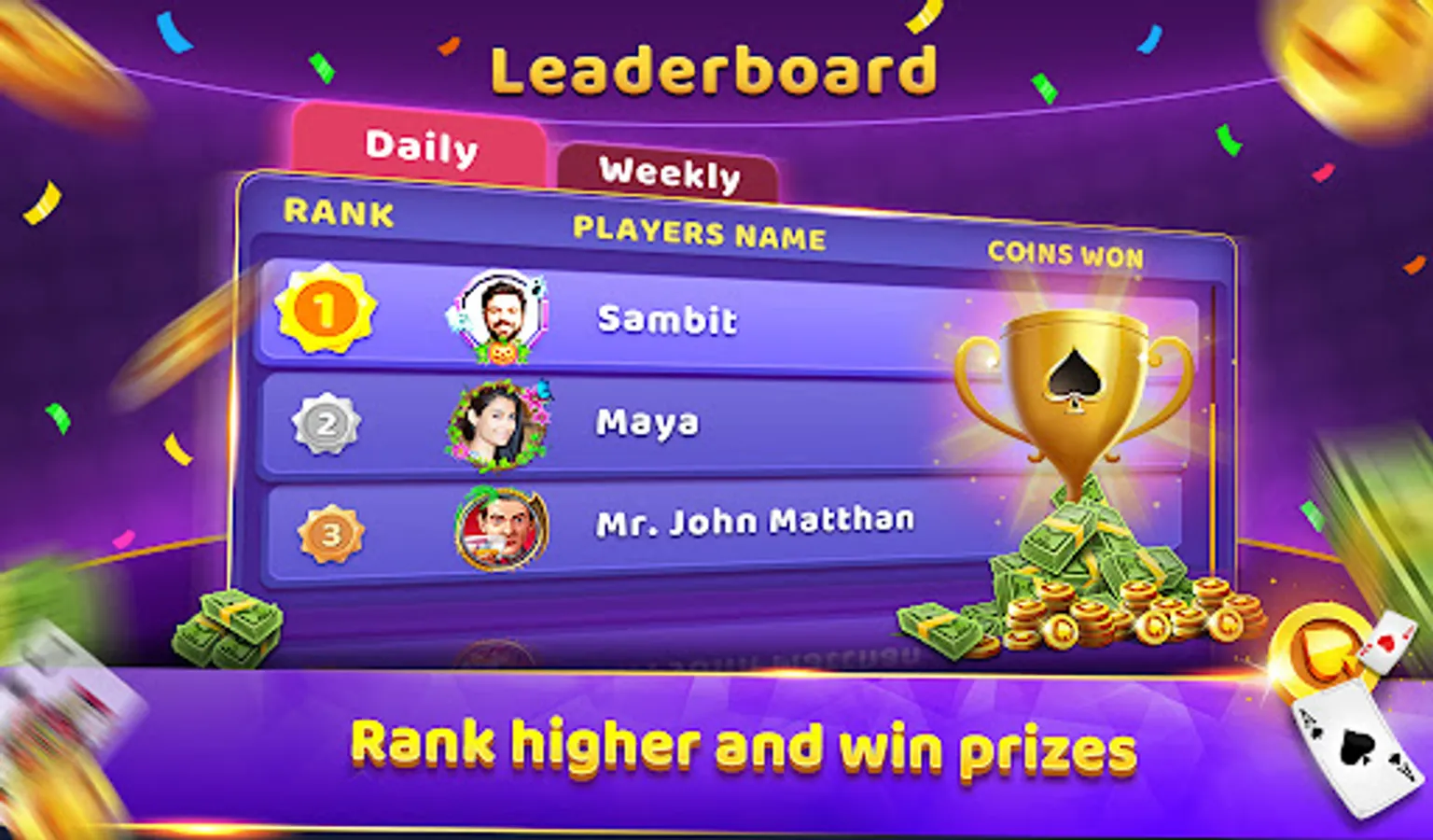 Play in 6 lobbies with different entry coin amounts and earn big rewards upon winning! Higher the lobby, bigger the reward! Progress through higher lobbies, collect maximum coins & cash, and emerge as an expert Callbreak player!
