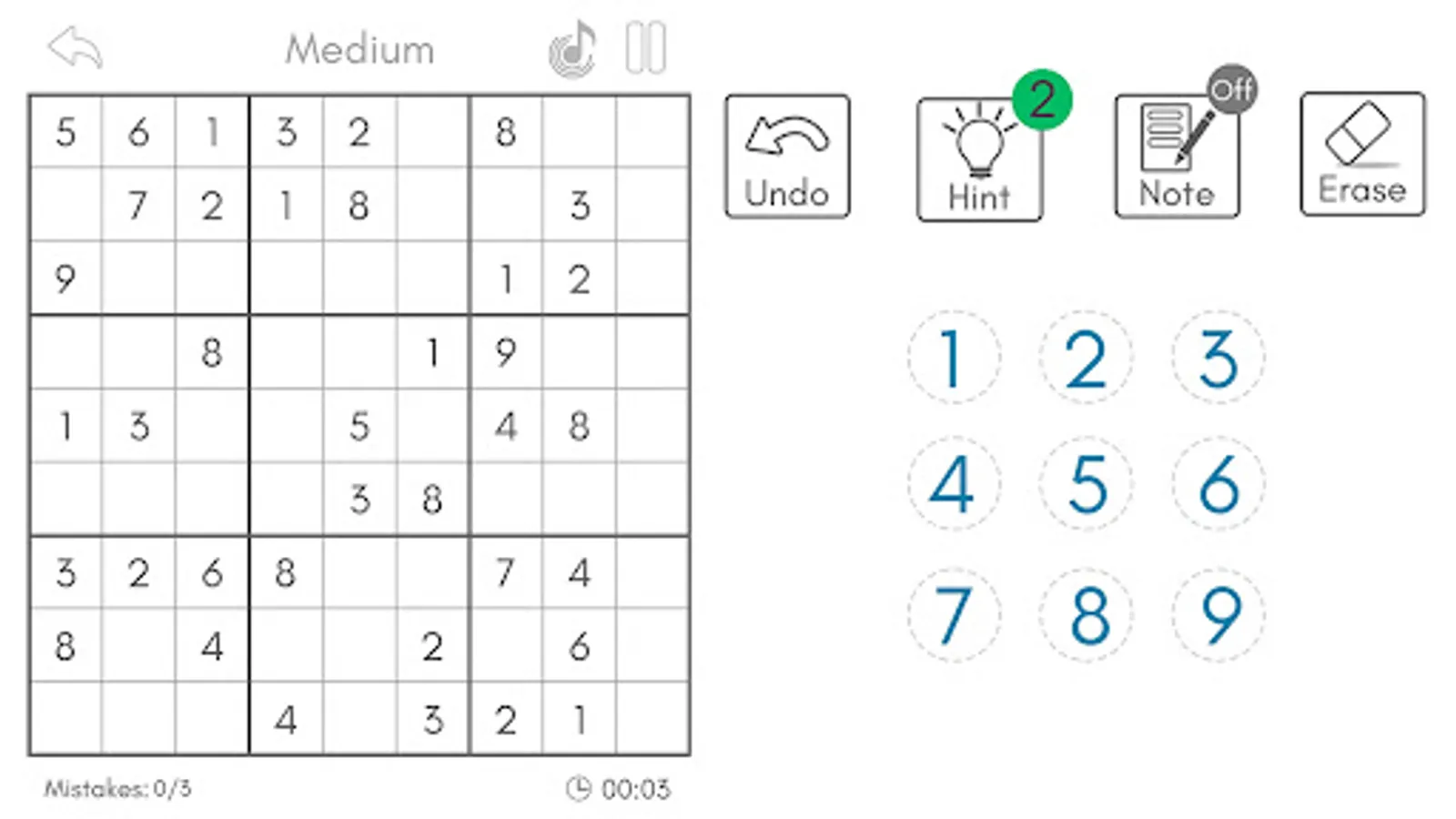 Sudoku King is the same as the old classic Sudoku puzzle game, a well designed exercise mental muscle. Sudoku has been classically known to improve problem-solving speed and IQ, a number games. It is a great brain exercise to improve the mental capability in children.