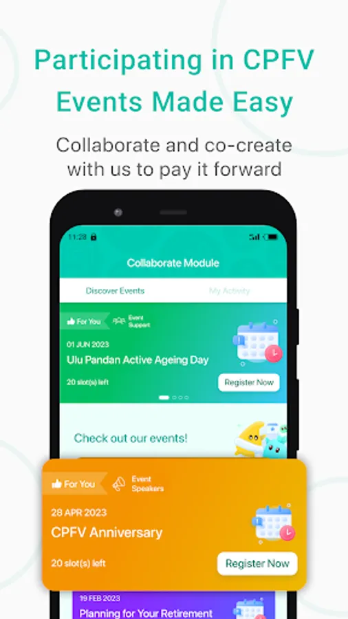 Through the Community Paying it Forward movement, you can do good by helping others to improve their understanding of CPF schemes and make informed decisions on the use of their CPF savings. The CPF Volunteering (CPFV) application is a one-stop platform for you to:
