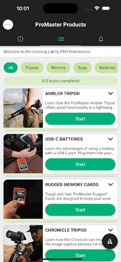 Welcome to the Learning Lab by PRO Distributors! This is an industry-leading training app for people in the photo industry. Objectives are gamified for an entertaining, individualized learning experience.