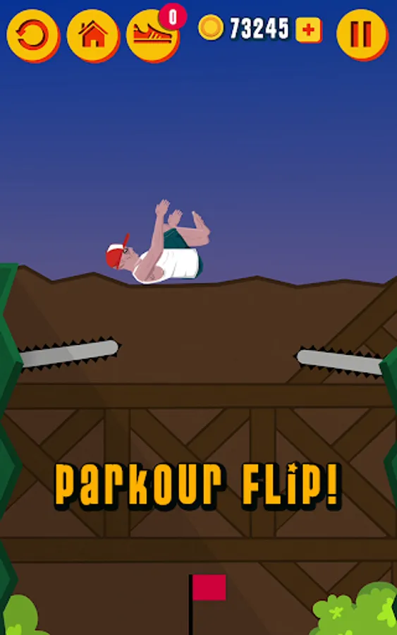 Avoid dangerous objects like spikes, chainsaws, sharp objects, circular saws and more obstacles while flipping.