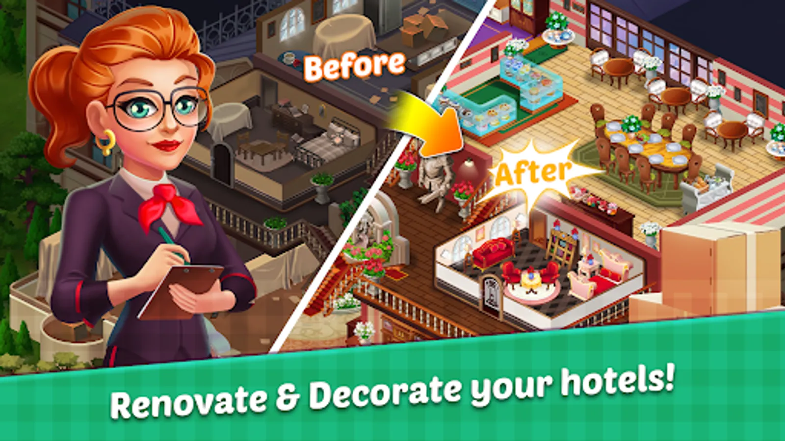 People all over the world 🌎love vacation, cooking, and they want to have fun. ✈️They travel for adventure or business or pleasure, and they need the relaxing coffee time or do something fancy. It is time for you to run luxury hotels, build up your grand hotel team and show people the best hotel service and enjoy the delicious food.