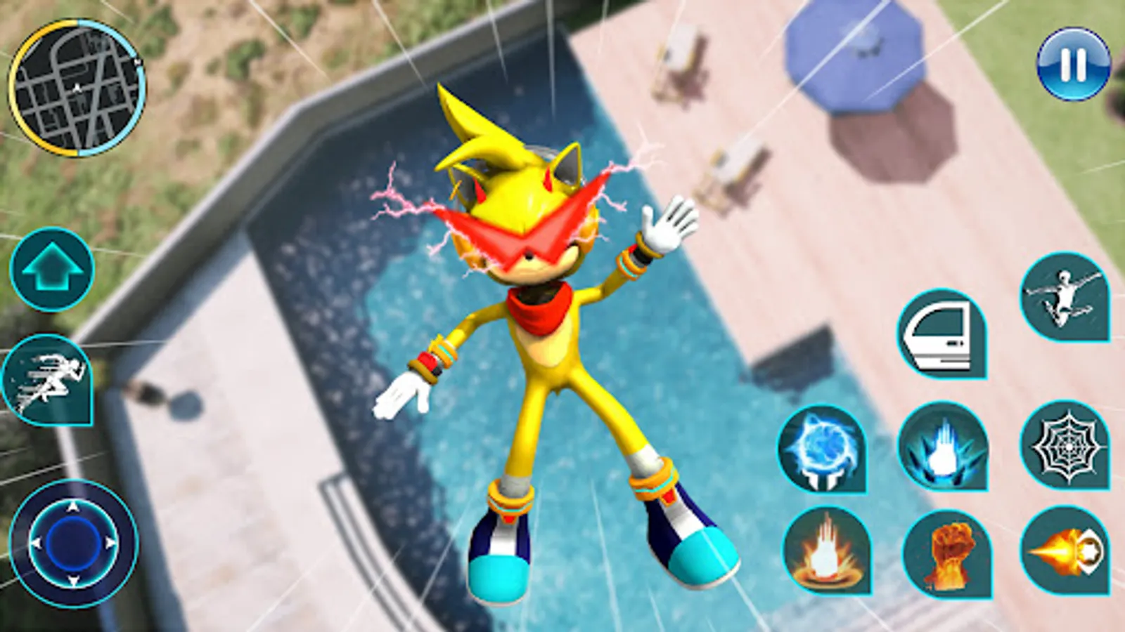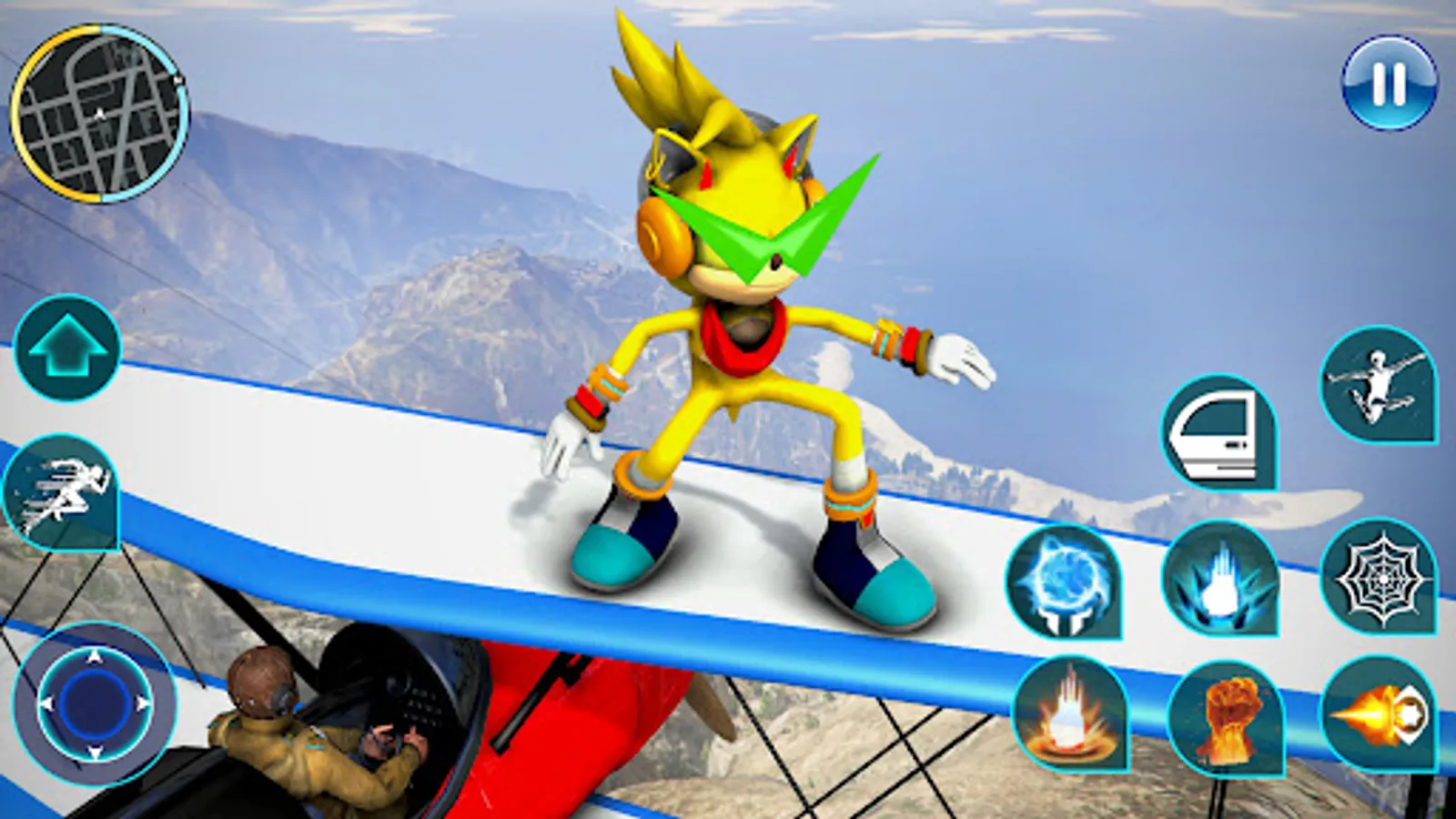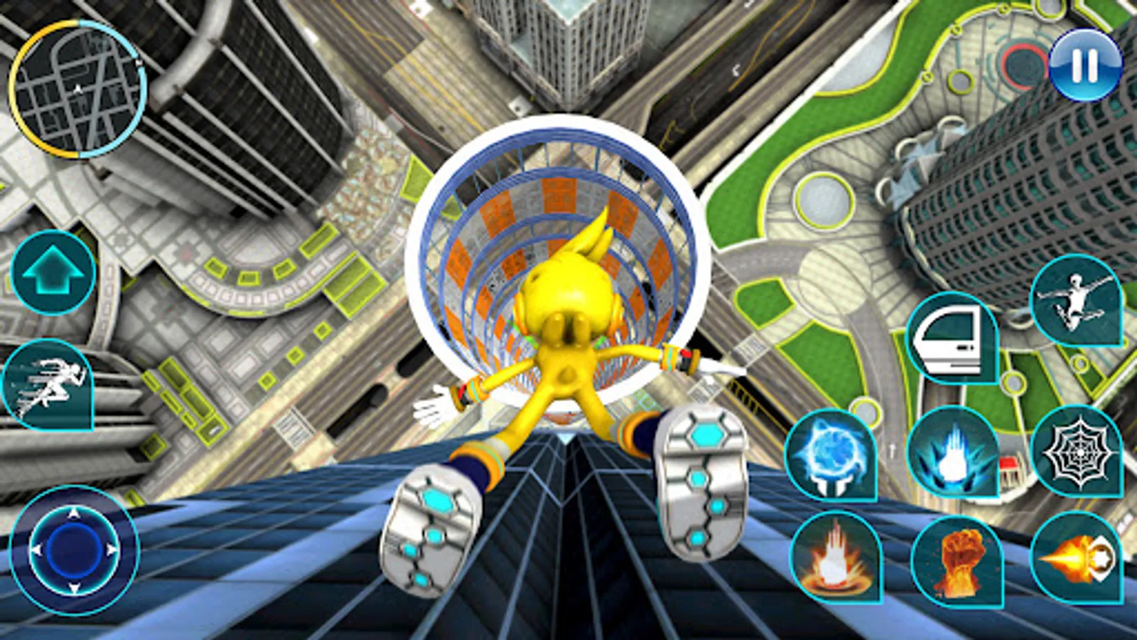 Super hedgehog rope hero 3D is a superhero flying hedgehog game with a city hedgehog dash adventure. Super blue monster rope hero is ready to run, fly and swing with a blue hedgehog rope tail. Are you ready to help the super hedgehog blue monster rope to fly as a hero in a city escape? Become a hedgehog rope hero to save people from gangster mafias in the grand crime city. Explore the futuristic gangster crime city with amazing swing hero rope animations. Climb the buildings with heroes swing rope and fight the gangs in blue superhero game. Be the best blue monster superhero and take down the bad guys in this super fast blue hero hedgehog adventure.