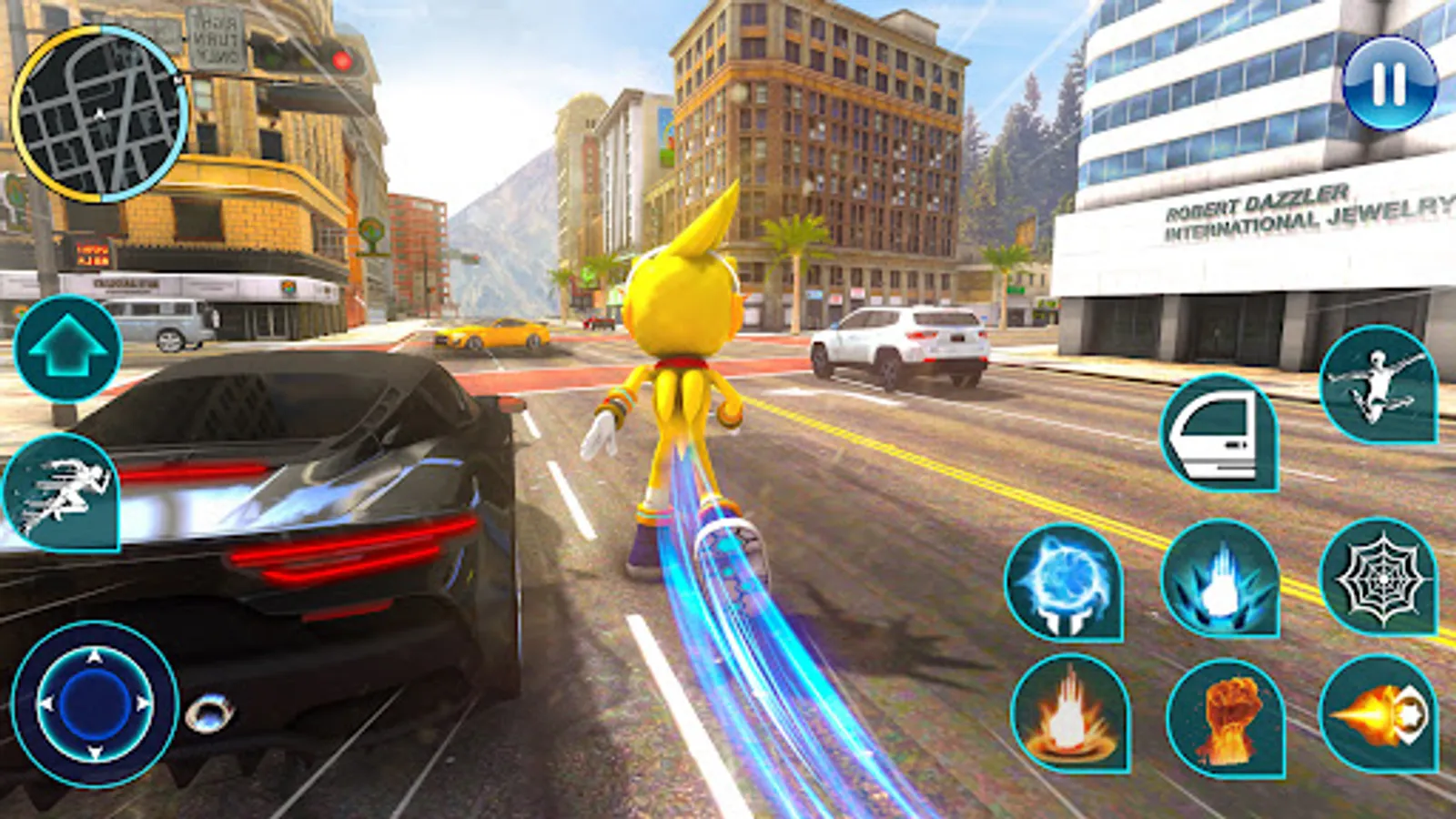 Play the super blue hedgehog rope hero game with smooth animations and multiple environments. Super Hedgehog hero swings freely through the crime city with jumping flying and driving skills. Act as a crime city guard in a blue rope adventure game to save innocent people from snatchers and gangsters. Blue Monster rope hero has multiple powers to kill and shoot the enemies of the gangster city. It's going to be a great monster rope hedgehog adventure in the flying rope blue game. Become the real-life super hedgehog blue rope hero by fighting against the crime gangsters and jungle titans in the flying super Hedgehog run 3d game. Wore the super hero blue suite in the Gangster city game and conquer the blue monster rope hero powers.