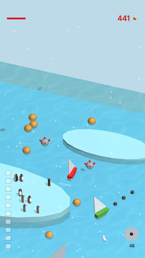 Sink the other boats with your cannon. Play and win stages, sailing through islands, ice blocks, fishes, crocodiles, penguins...
