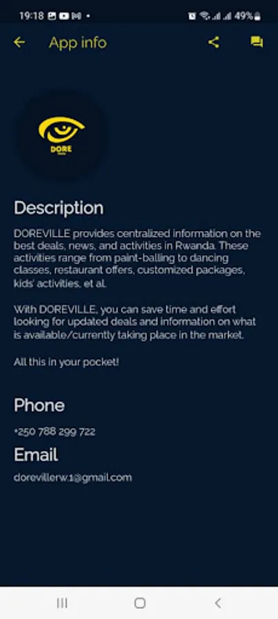 DOREVILLE provides centralized information on the best deals, and activities in Rwanda. These activities range from paint-balling to dancing classes, restaurant discounts, and customized packages. With DOREVILLE, you can save time and effort looking for updated deals and information on what is available/currently taking place in the market with a touch of a button.