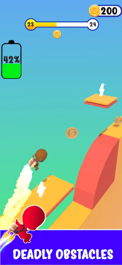 Jetpack Pro JetPack Pro - 3D Rush Game is a 3D hyper casual game with interesting gameplay, beautiful graphics and animations, cool game effects and great interface.It is a satisfying and entertaining game, you will enjoy moving the Jetpack man with a lot of fun flying over the obstacles, run through the box. It promotes fun, focus and it relieves stress and anxiety. It is the most fun game to play.