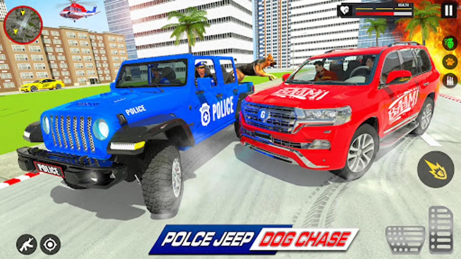 This season, play dog chase SUV car driving police chase game in Jeep games driving and action-adventure games, perform police cop dog duty and grab police criminals in SUV car simulator free realistic games. The criminals do heist in city and the police force has to perform their duty with cop dog chase to chase crime and arrest criminals in police arrest shooting games.