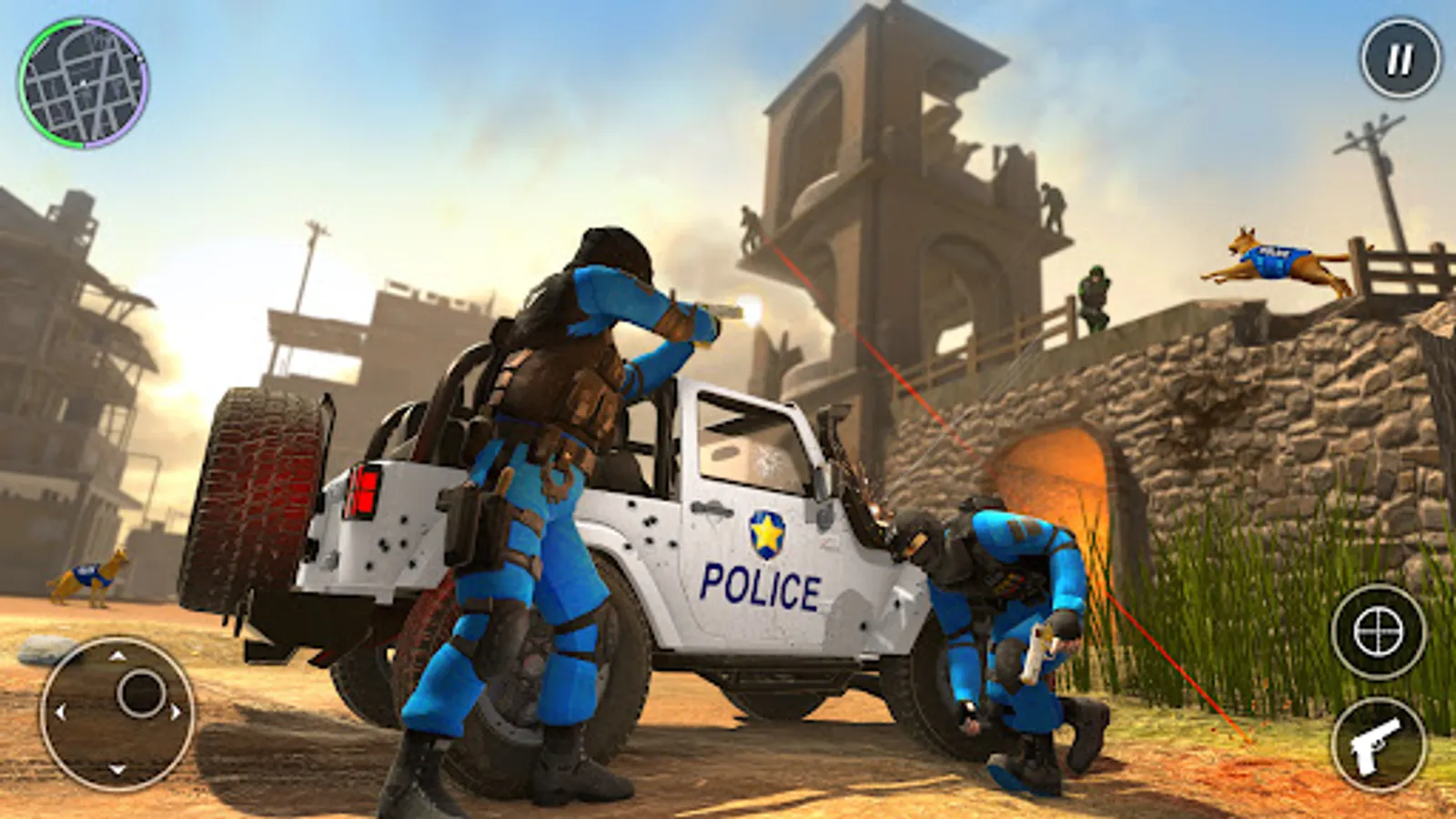 Police Dog Crime Chase SUV Jeep Games 2022 there is more to it that you get to play the role of the secret Police Cop officer who plays as a real Sniper shooter in the grand sniper shooting mode & shoot all mafia gangsters mode to bring peace in the streets of US Crime City in this police cop dog car chase crime shooting games.