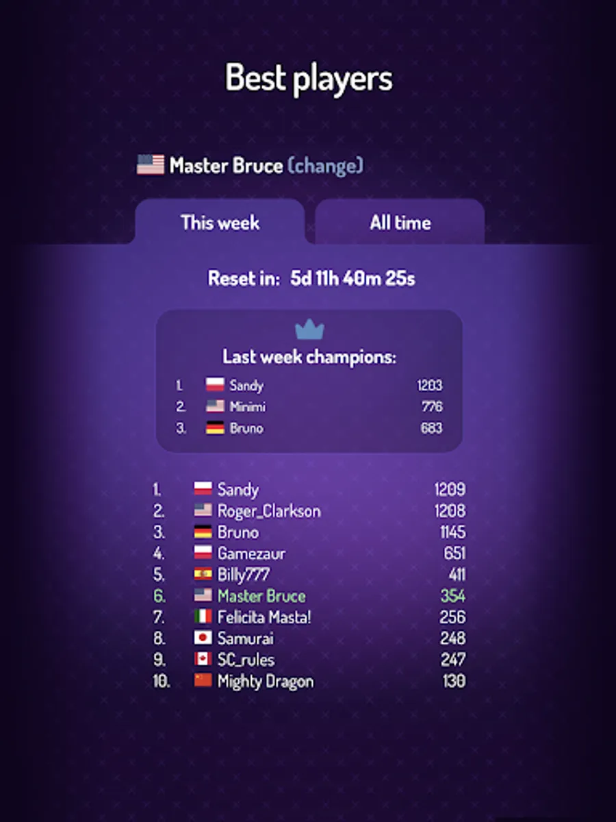 - Weekly tournaments: win the crown every week!