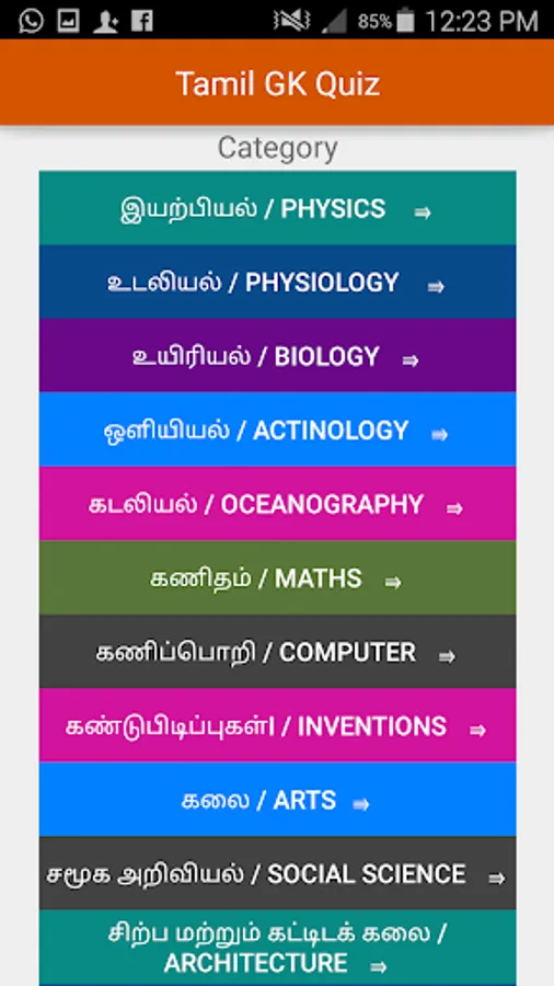 Tamil GK Quiz - This app comes with a very attractive interface that can be used by anyone. This is the recommended app for Tamil lovers who want to improve their general knowledge or prepare their exam in Tamil language.