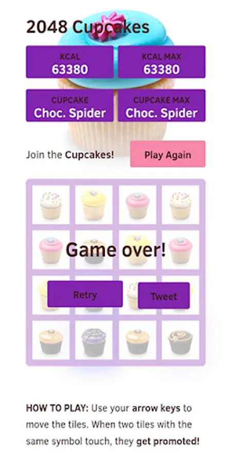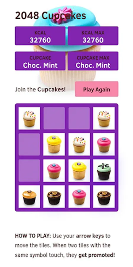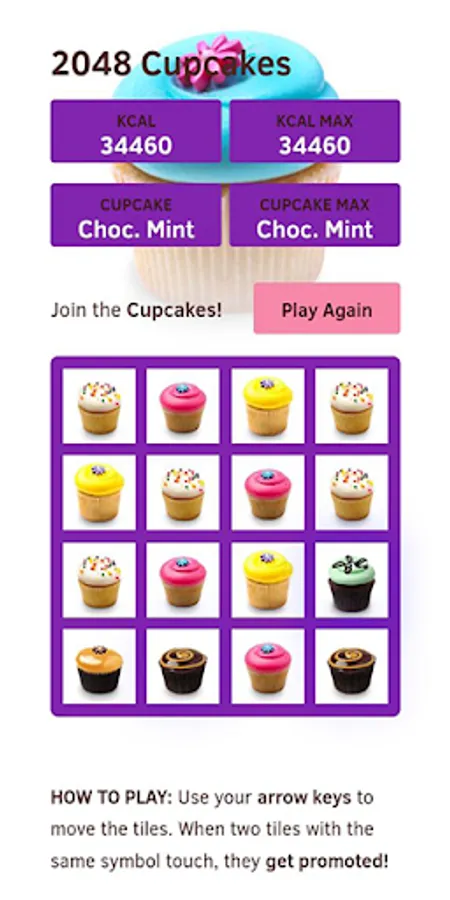Swipe your finger (up, down, left, right) to move the tiles. When two tiles with the same cupcake match, they merge into one to add a new cupcake.