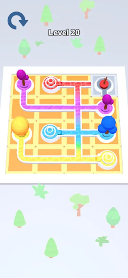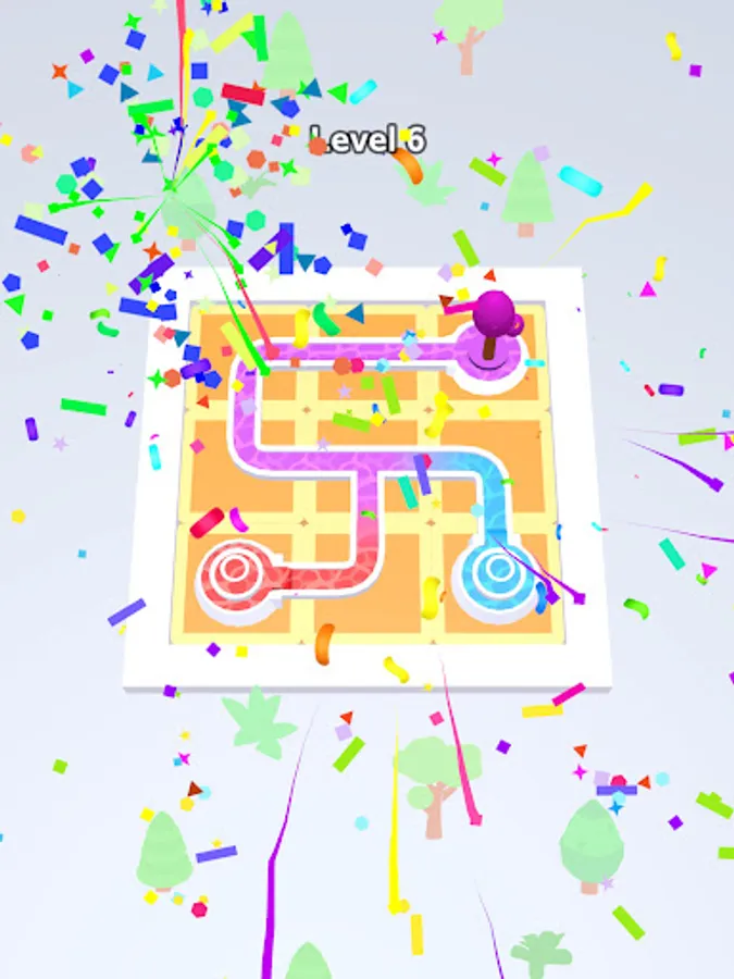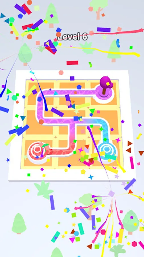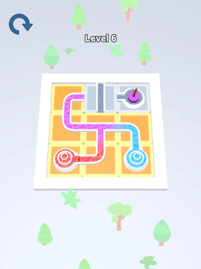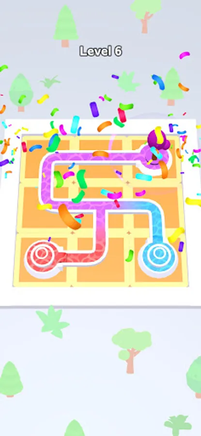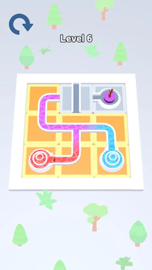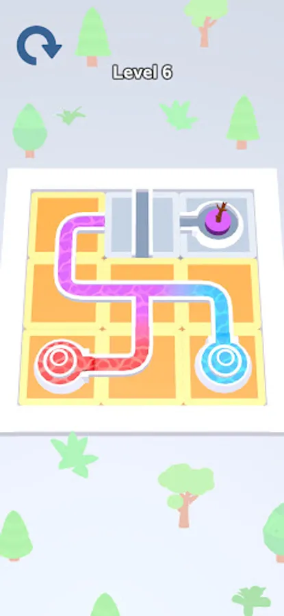 Color Flow is an addictive color puzzle game set in a beautiful garden where you tap and rotate tiles to guide water from start to finish, with the unique feature of colors blending along the way.