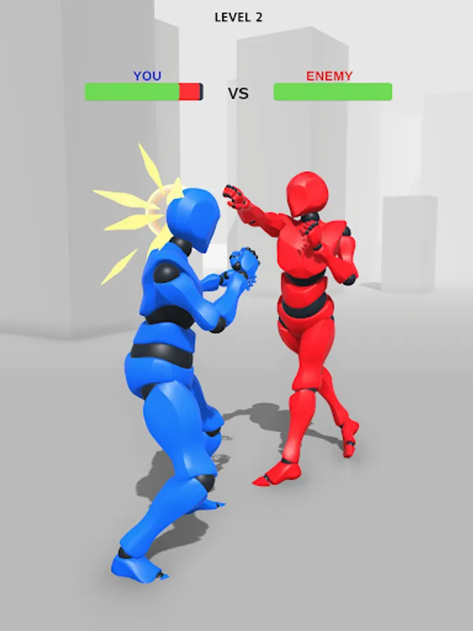A fierce battle begins! Watch out for your opponent's attacks and avoid them by jumping or crouching. When your opponent cowers, hit him or her with a rush attacks! Move fast and attack accurately to win the battle! Can you become the strongest warrior?