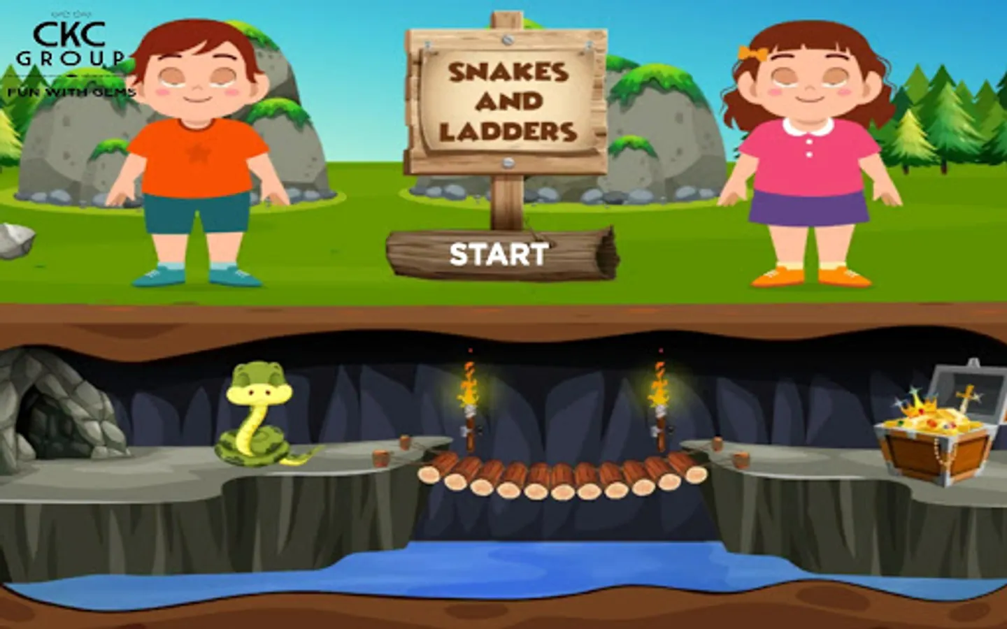 Basically, this is a snake and ladder game with many fun elements like Gems, Positive feedback popups, snakes and ladders.